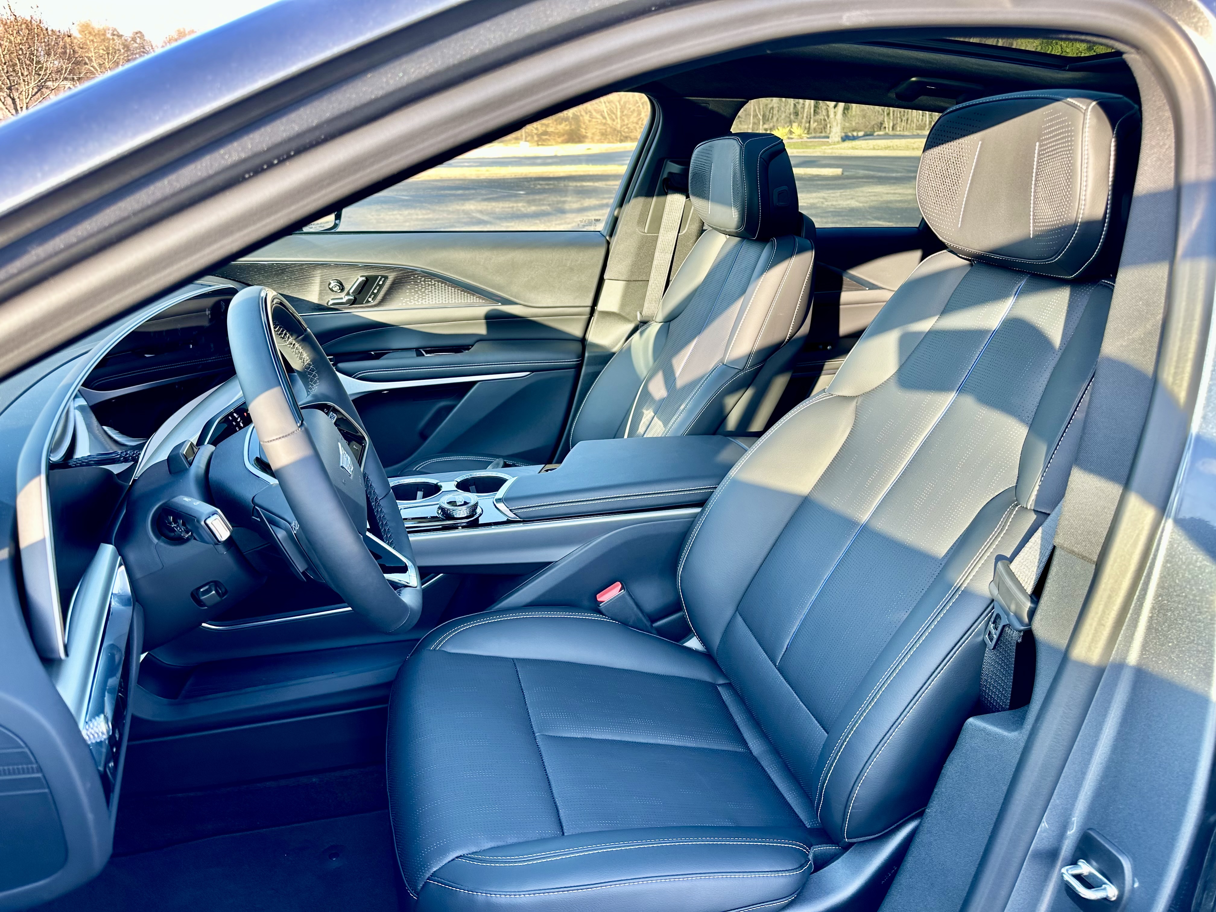 Inside is a different story. I am very happy inside the LYRIQ, with my heated, ventilated, and massaging front seats. All outboard seats are very cushioned and comfortable, with rear outboard seats costing plenty of legroom and heated seats. Middle seating in the rear is more firm and upright than the flanks but would work in a pinch for an extra adult looking for a ride somewhere. Up front, the driver is treated to 33 inches of curved OLED screen display, the same display now standard in the XT4 crossover. Google’s infotainment makes its way into the first Cadillac product we have seen and we have yet to find something that really annoys us with its operation.