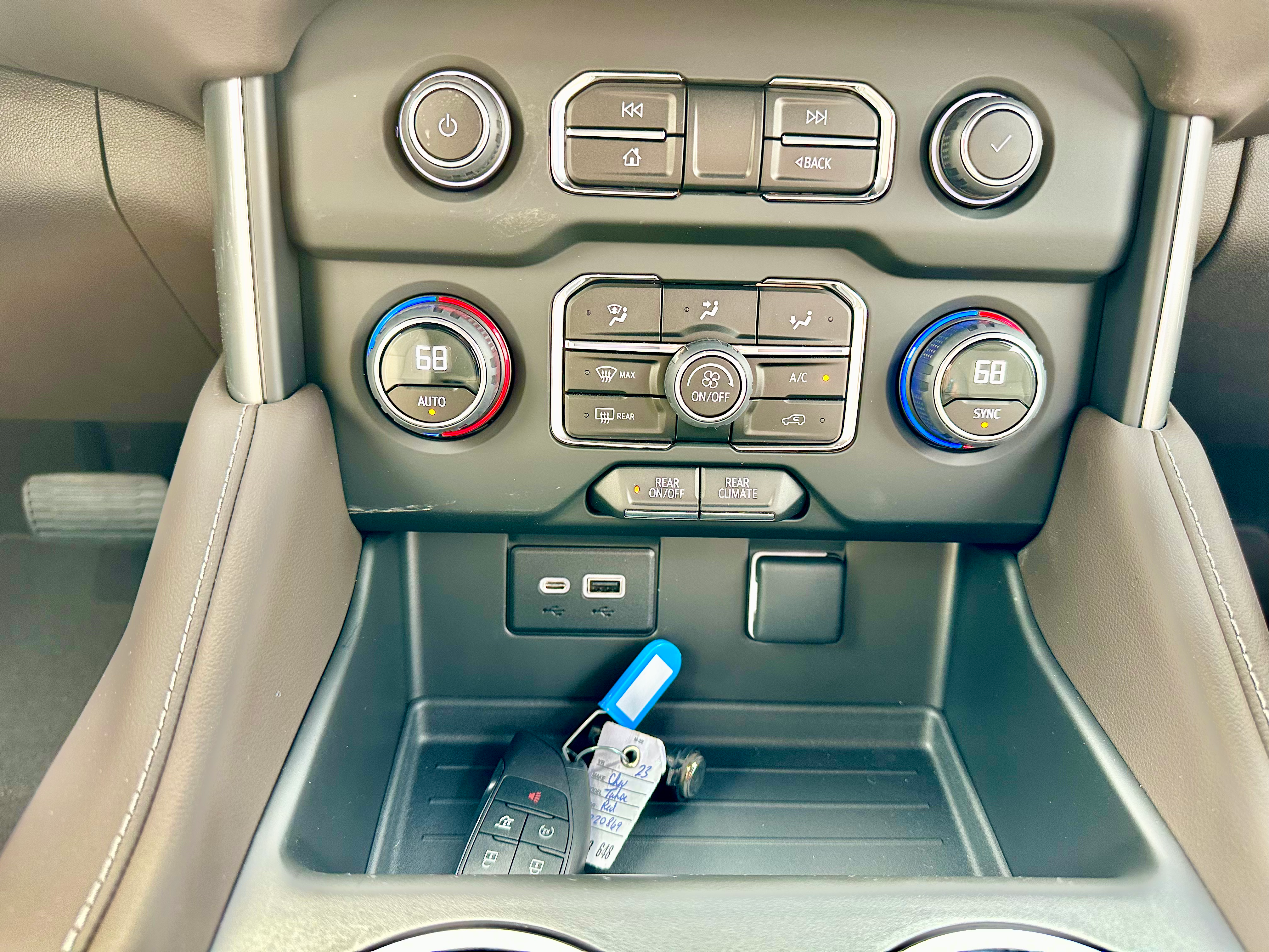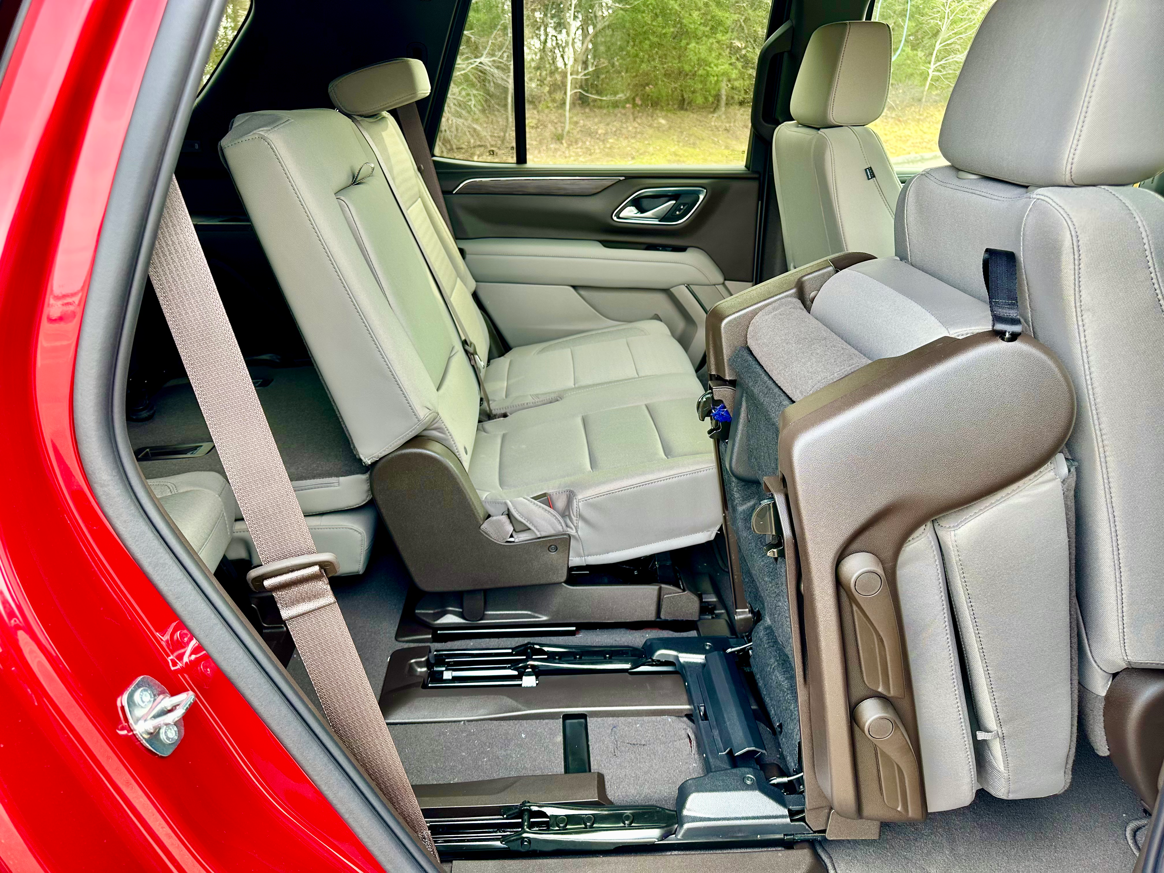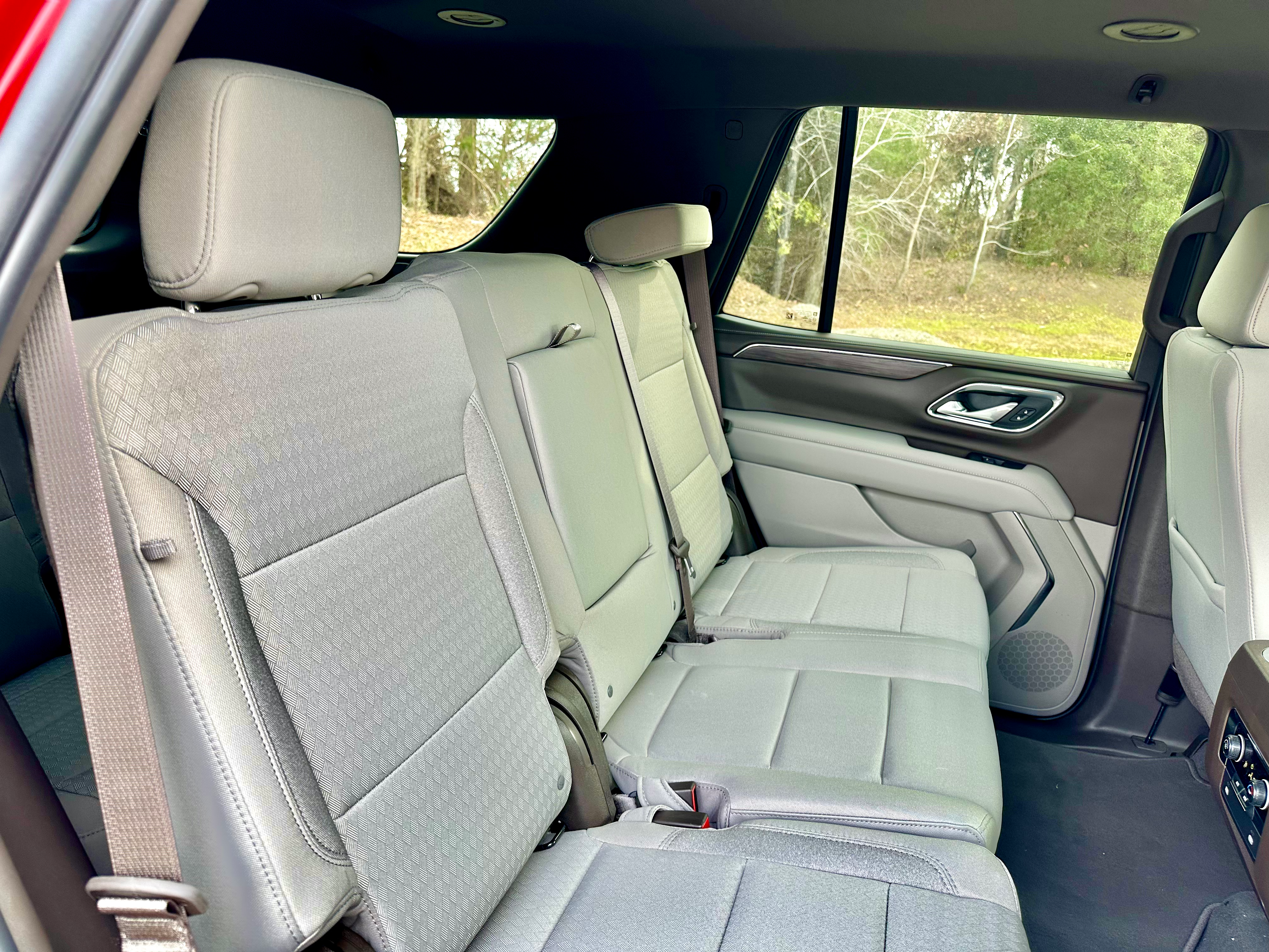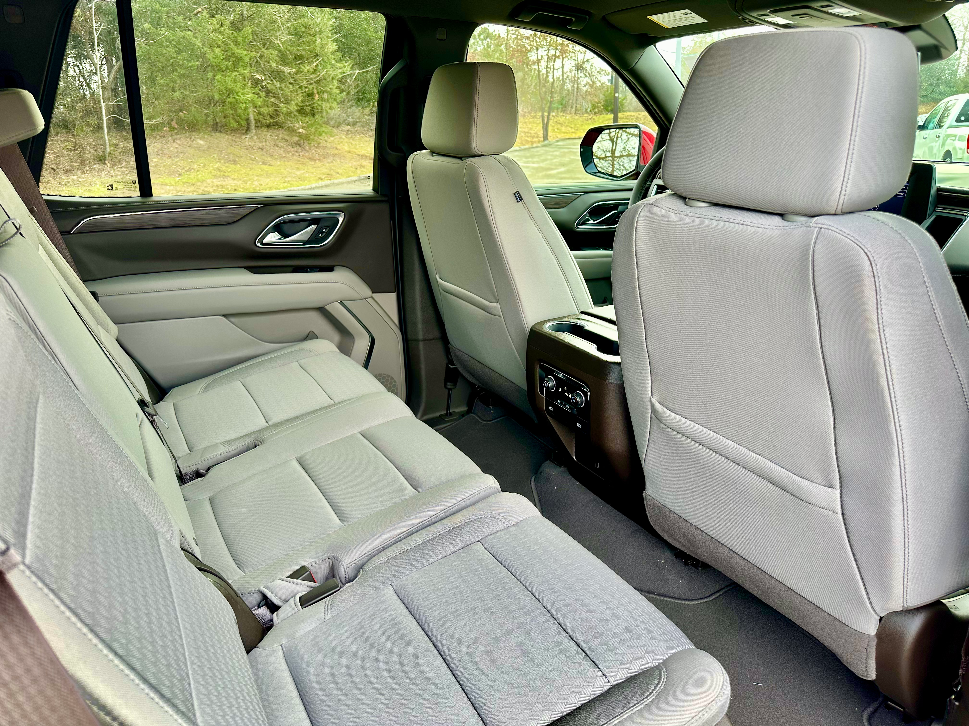Three-zone climate controls, USB ports, and plenty of cupholders all around make the Tahoe comfortable for any passenger, as does the sliding and reclining second row of seats.