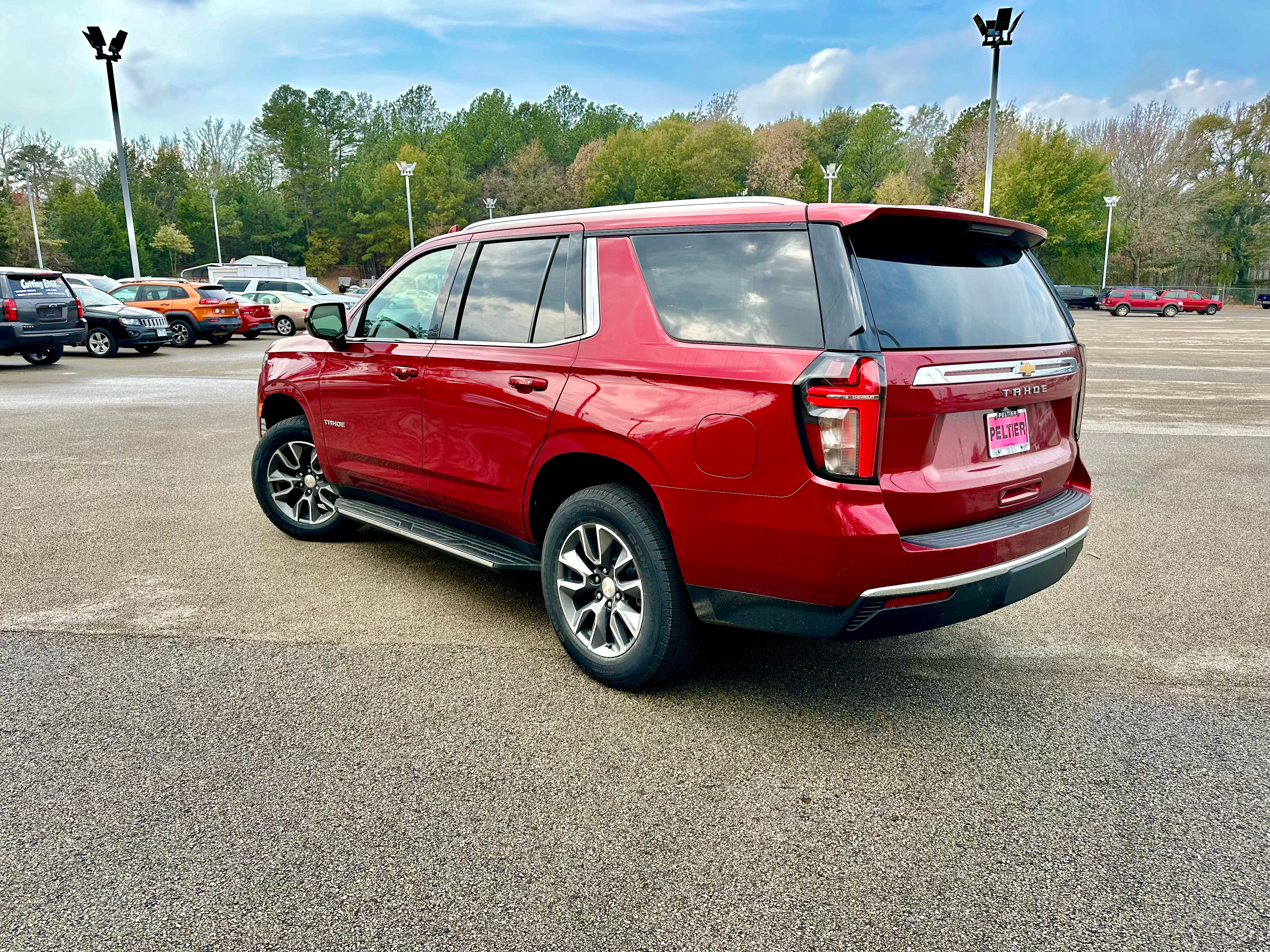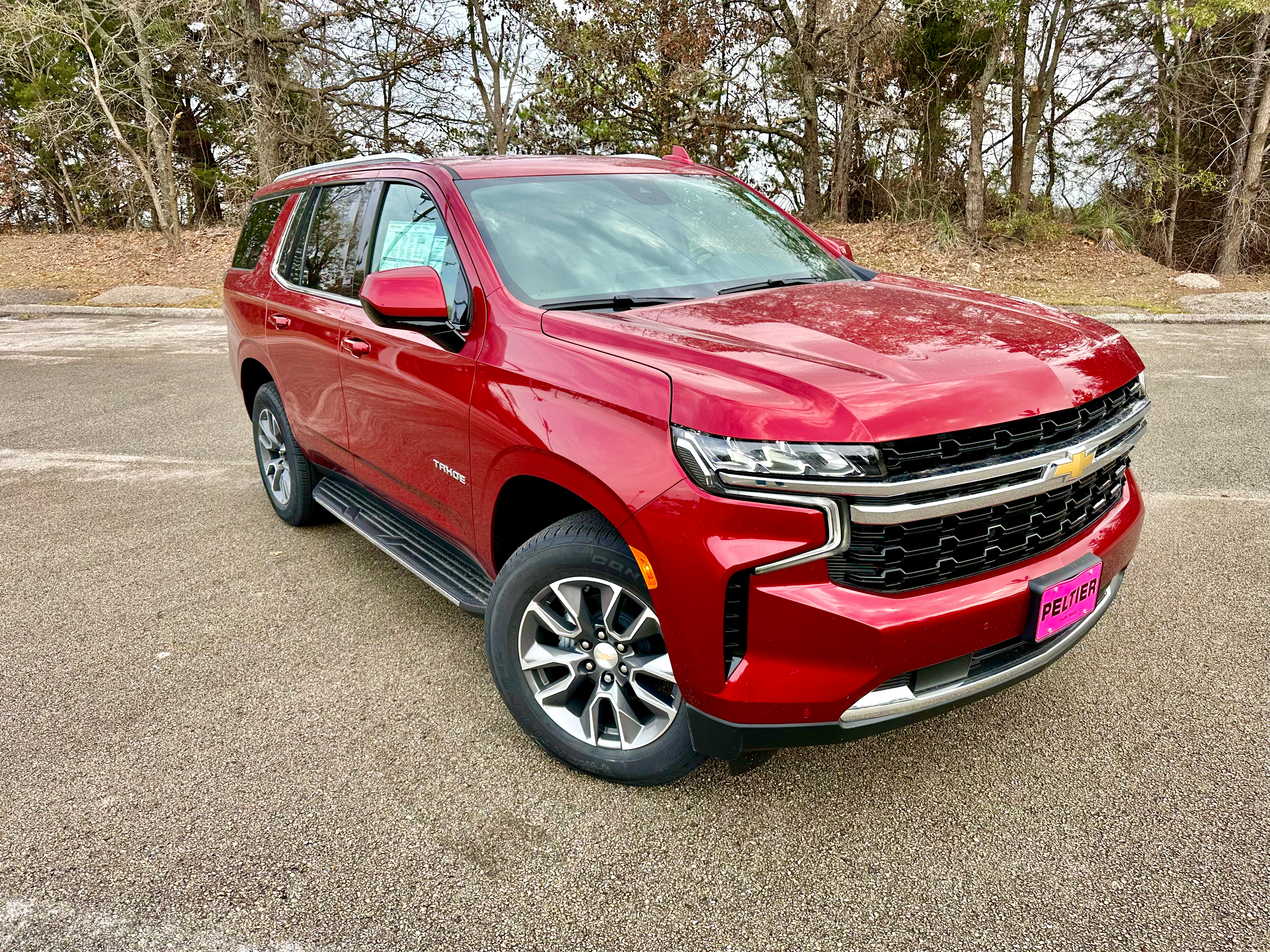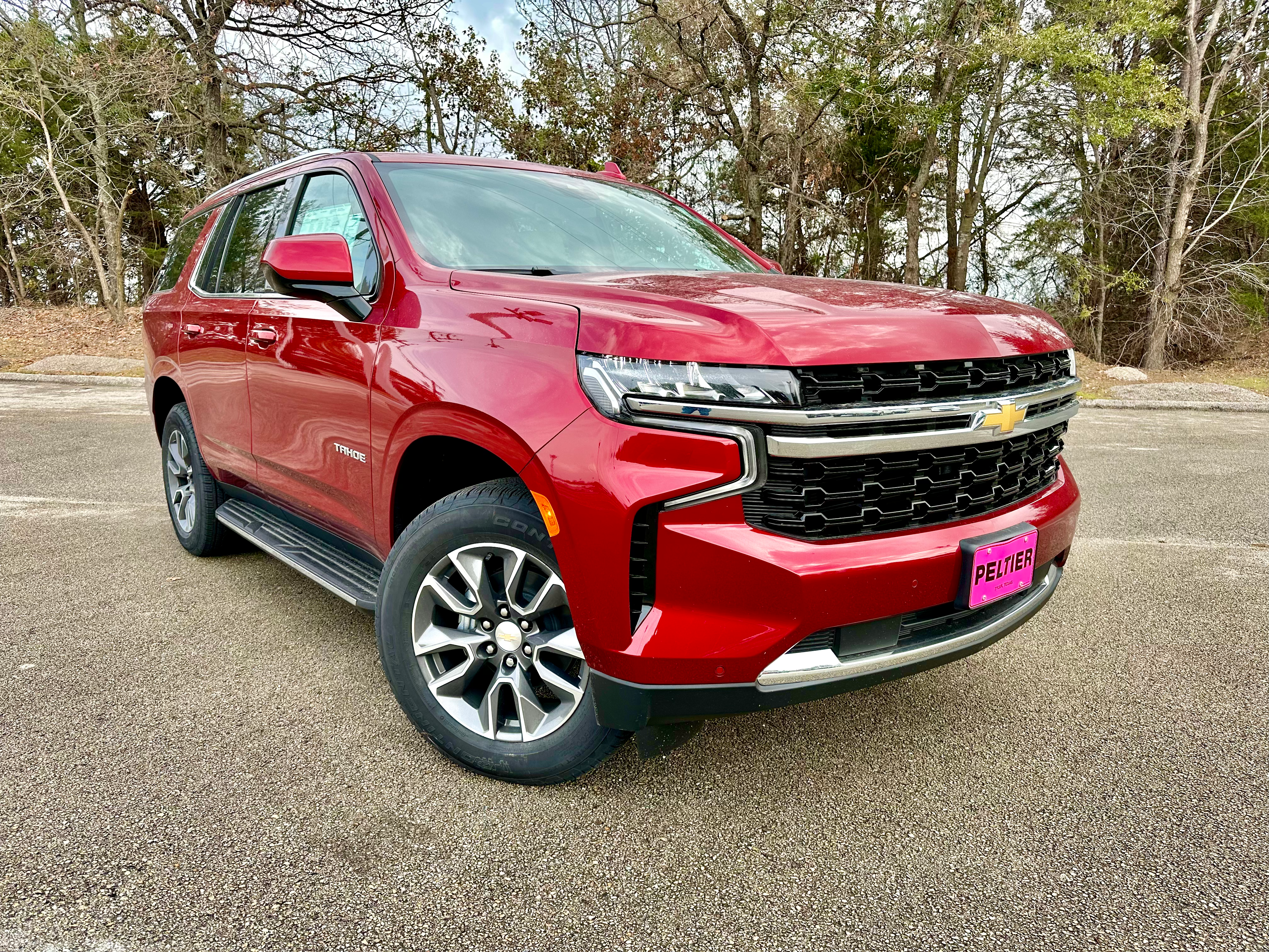 The sales leader of the full-size SUV segment is the Chevrolet Tahoe. This 2023 Tahoe LS version is the most affordable trim of the popular family vehicle and our example features optional 4WD, 20-inch updated wheels, and premium red paint.
