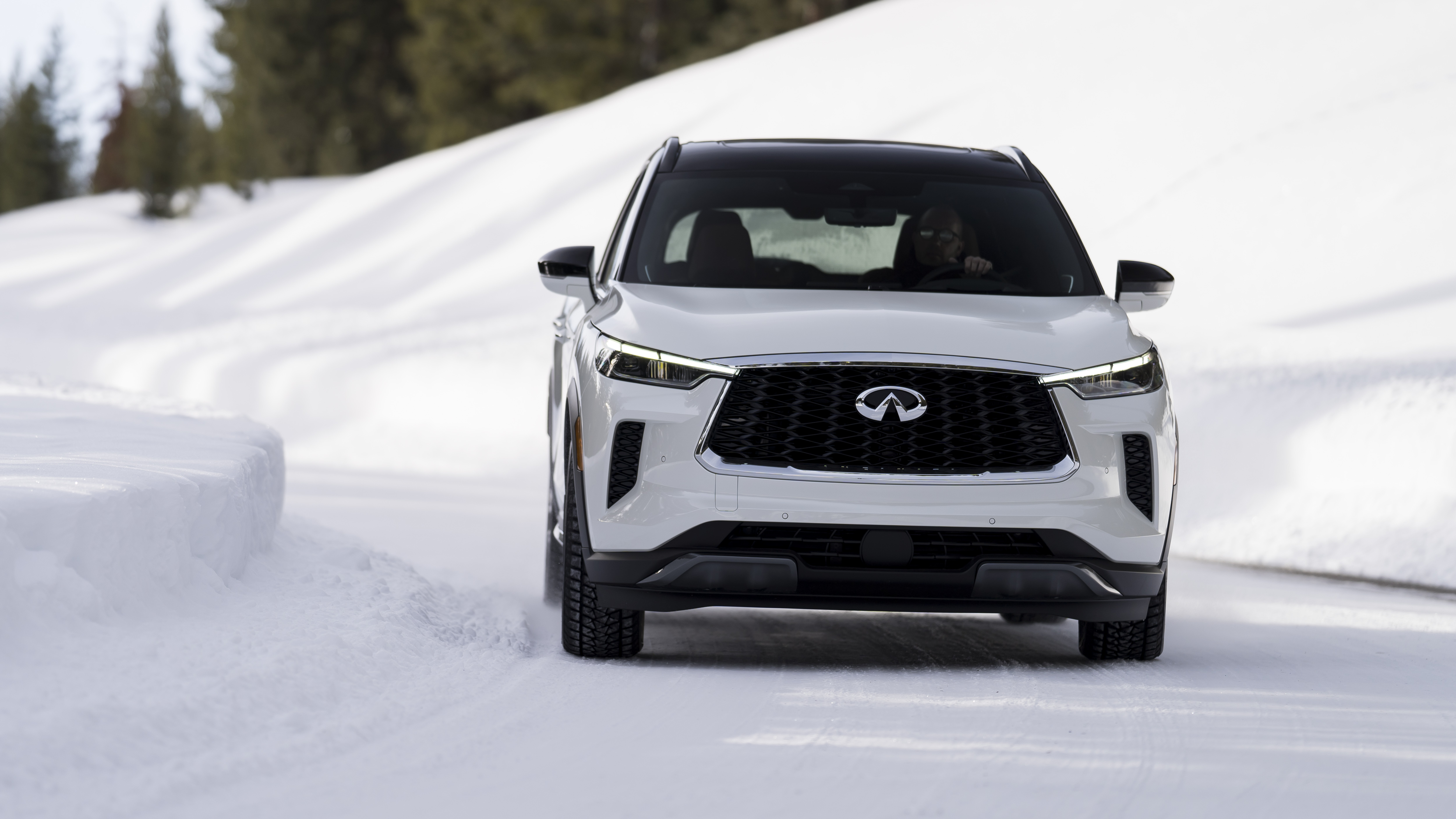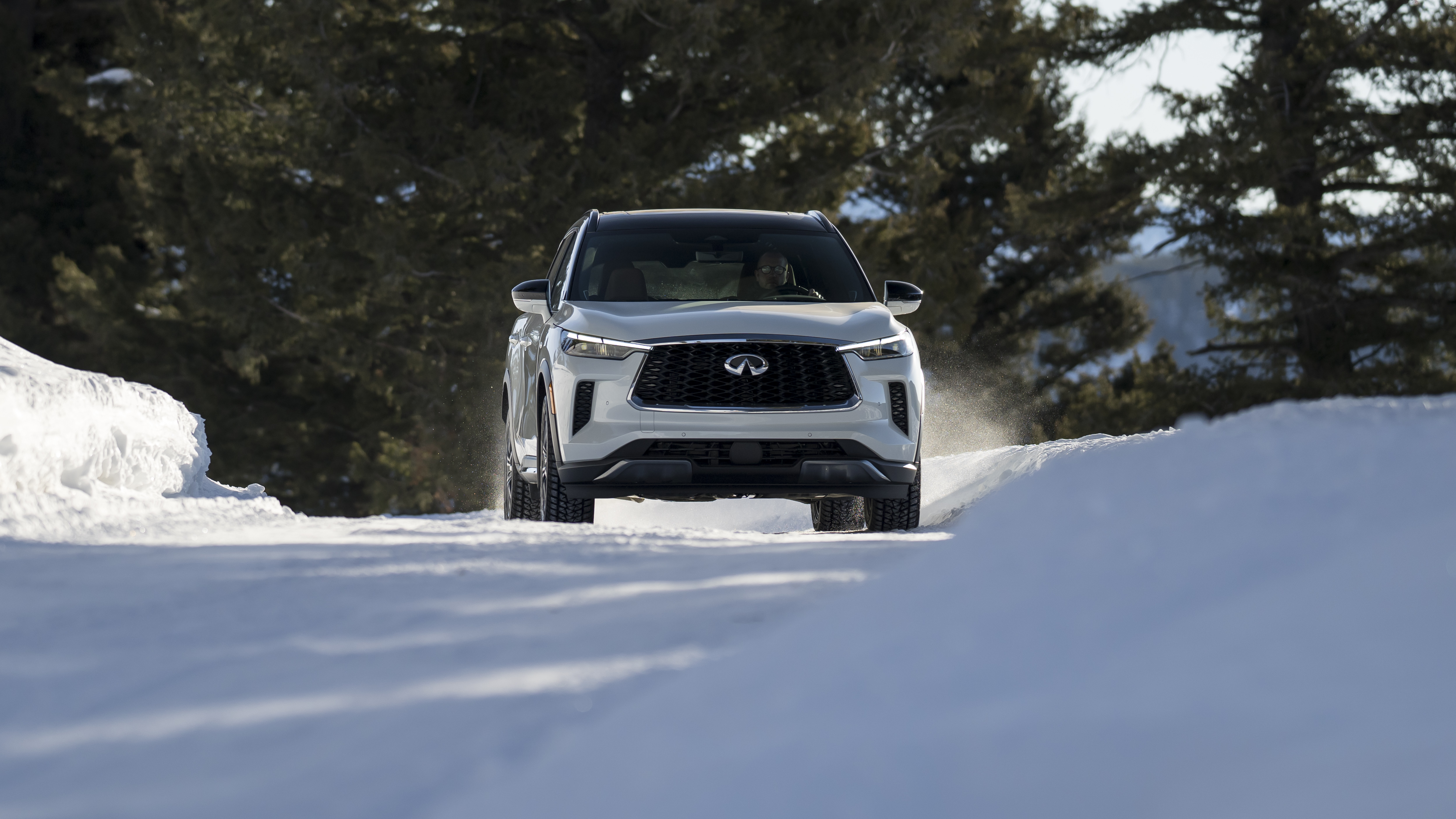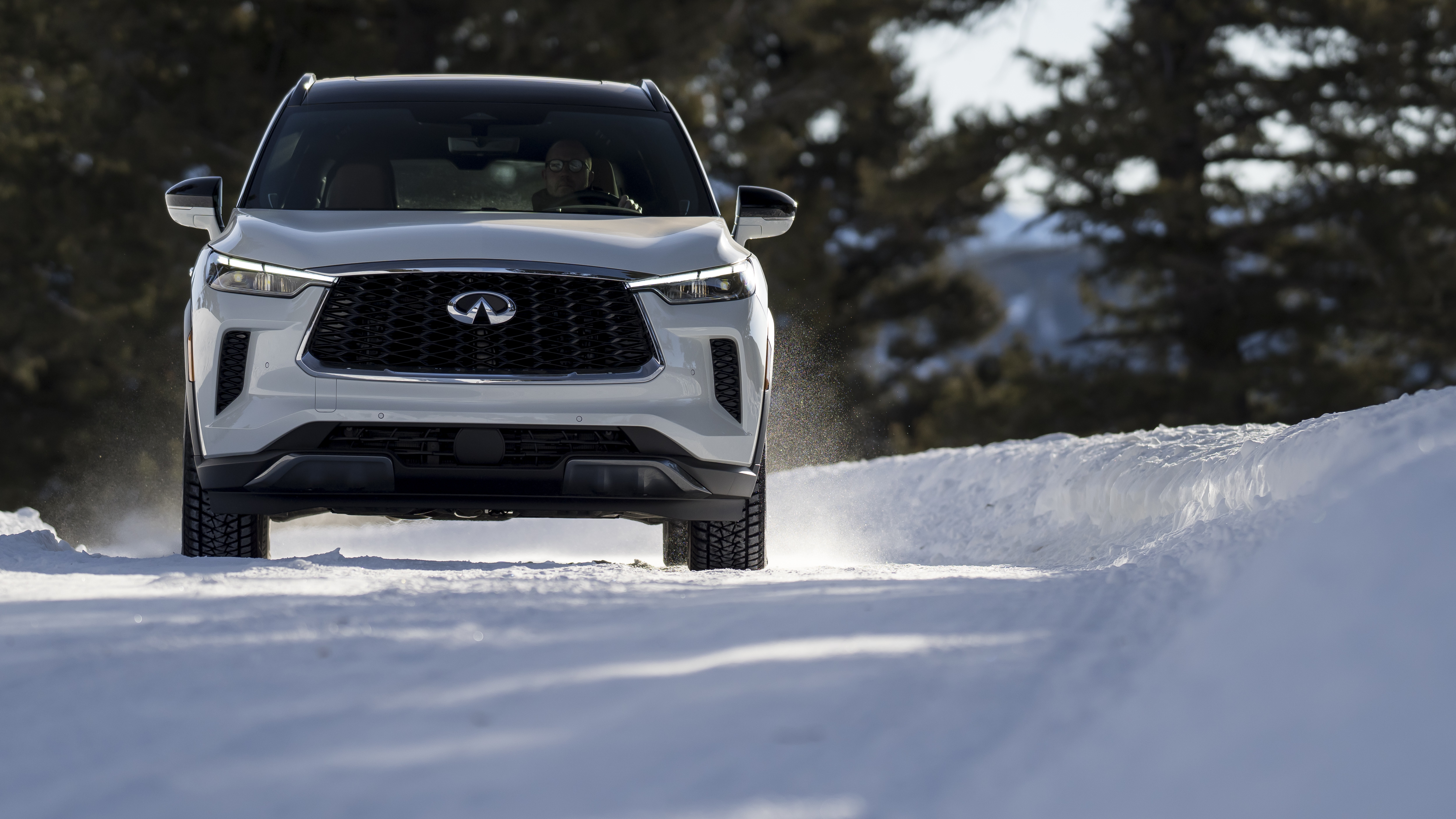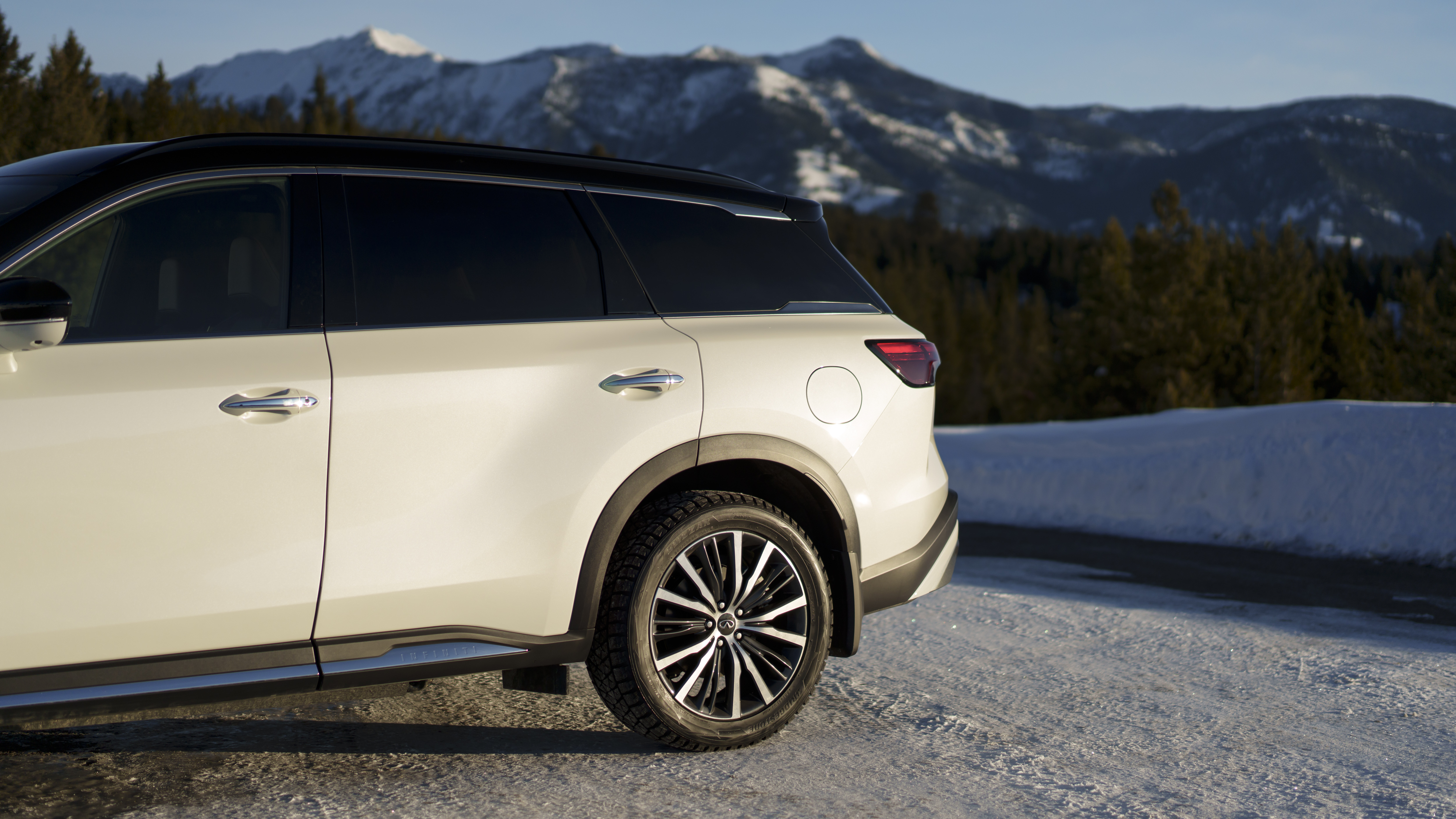 Power is supplied by Infiniti’s 3.5-liter naturally aspirated direct-injection V6 making 295 horsepower and 270 lb-ft of torque. Power is routed through a new 9-speed automatic transmission to all four tires thanks to Infiniti’s intelligent all-wheel drive. Our tester had Bridgestone Blizzak winter tires installed for our particular driving occasion.
