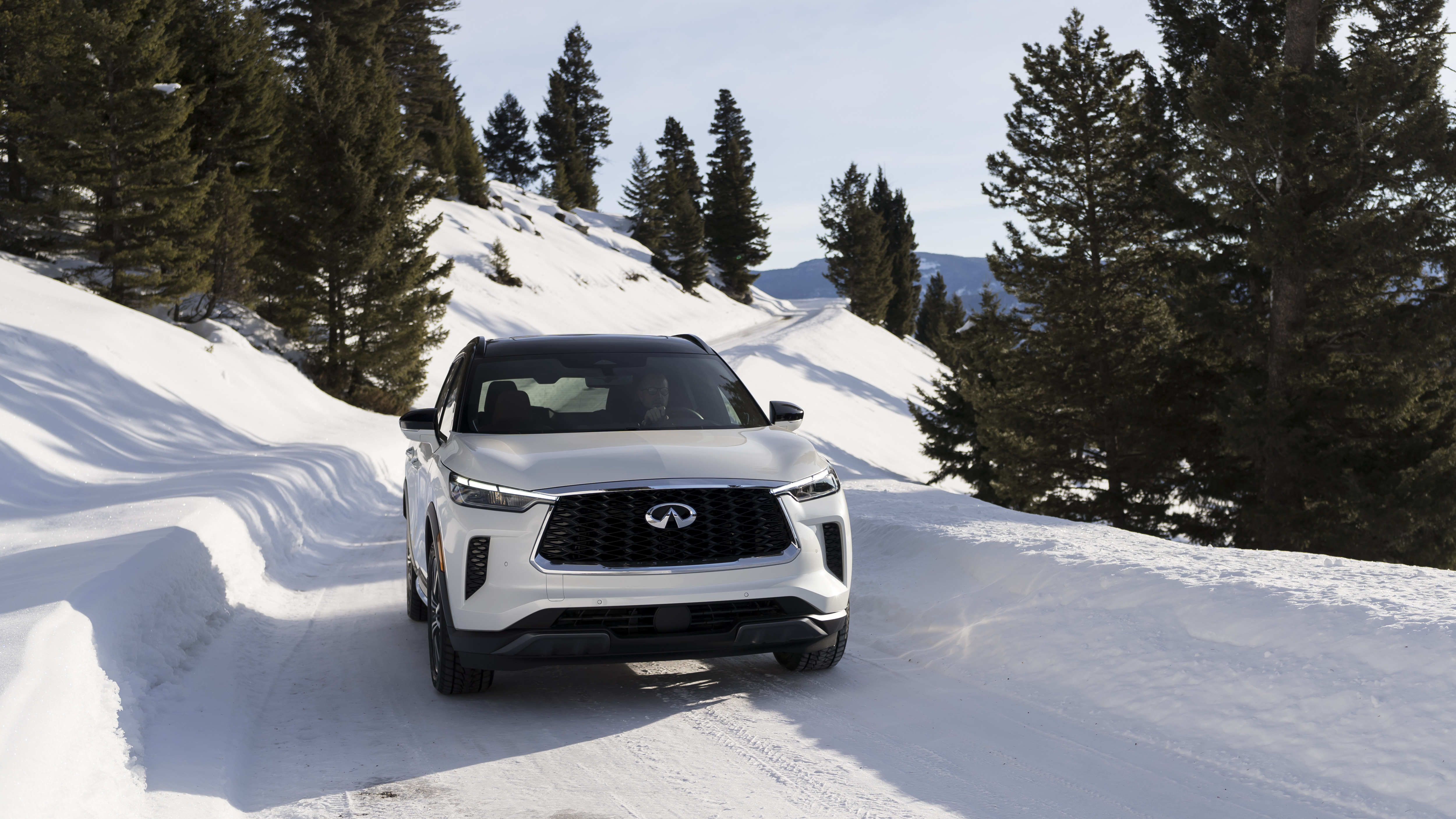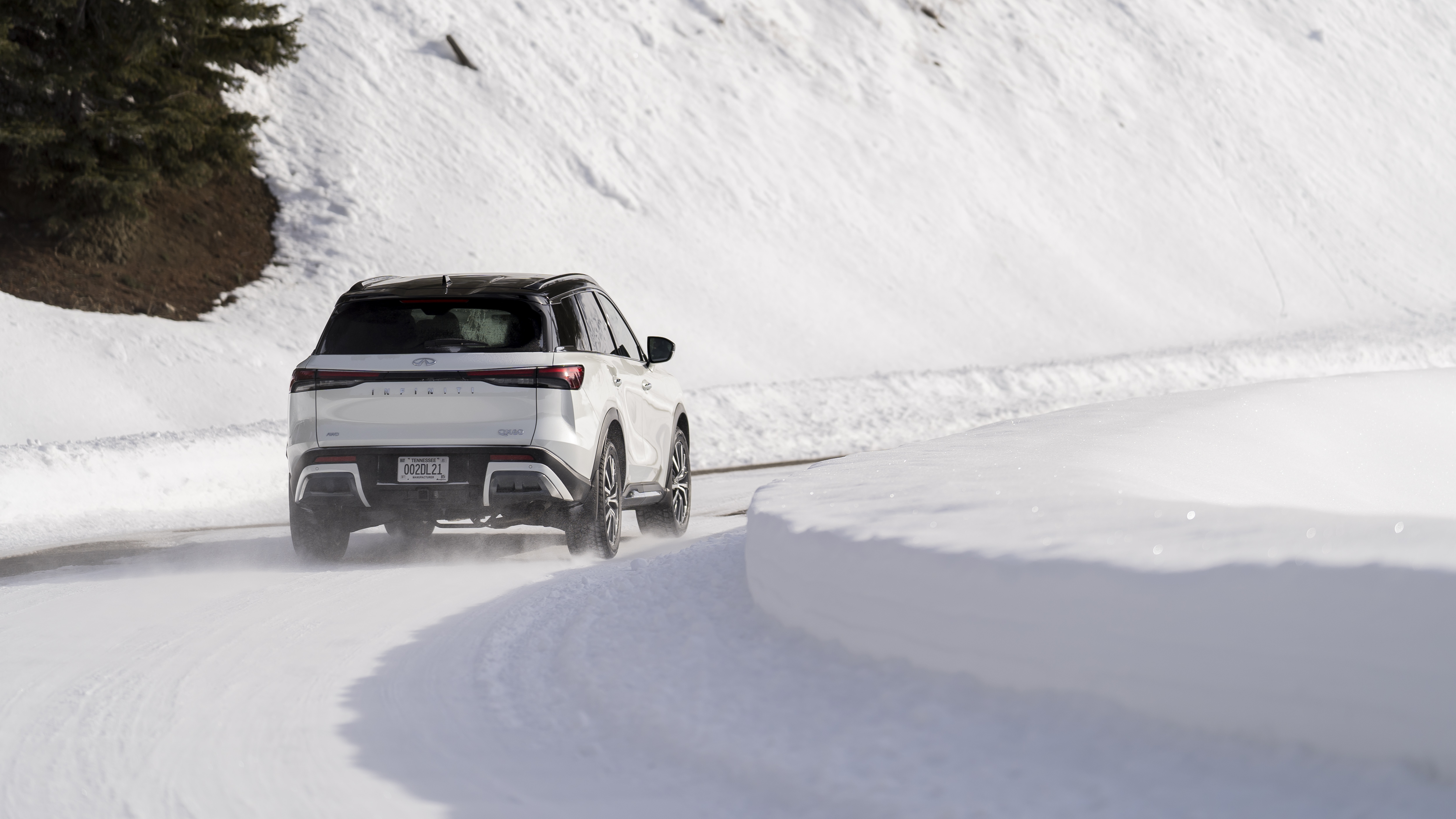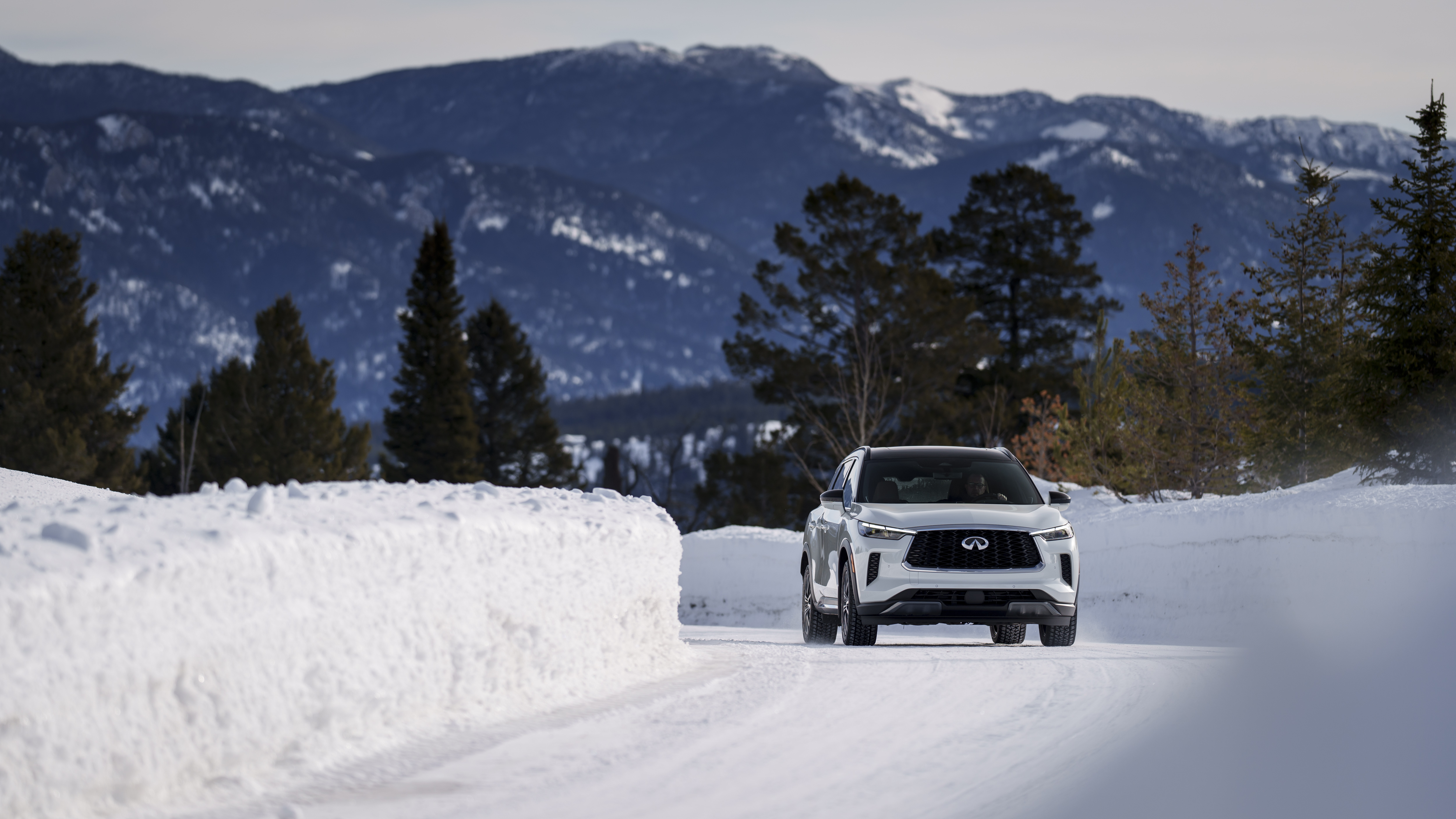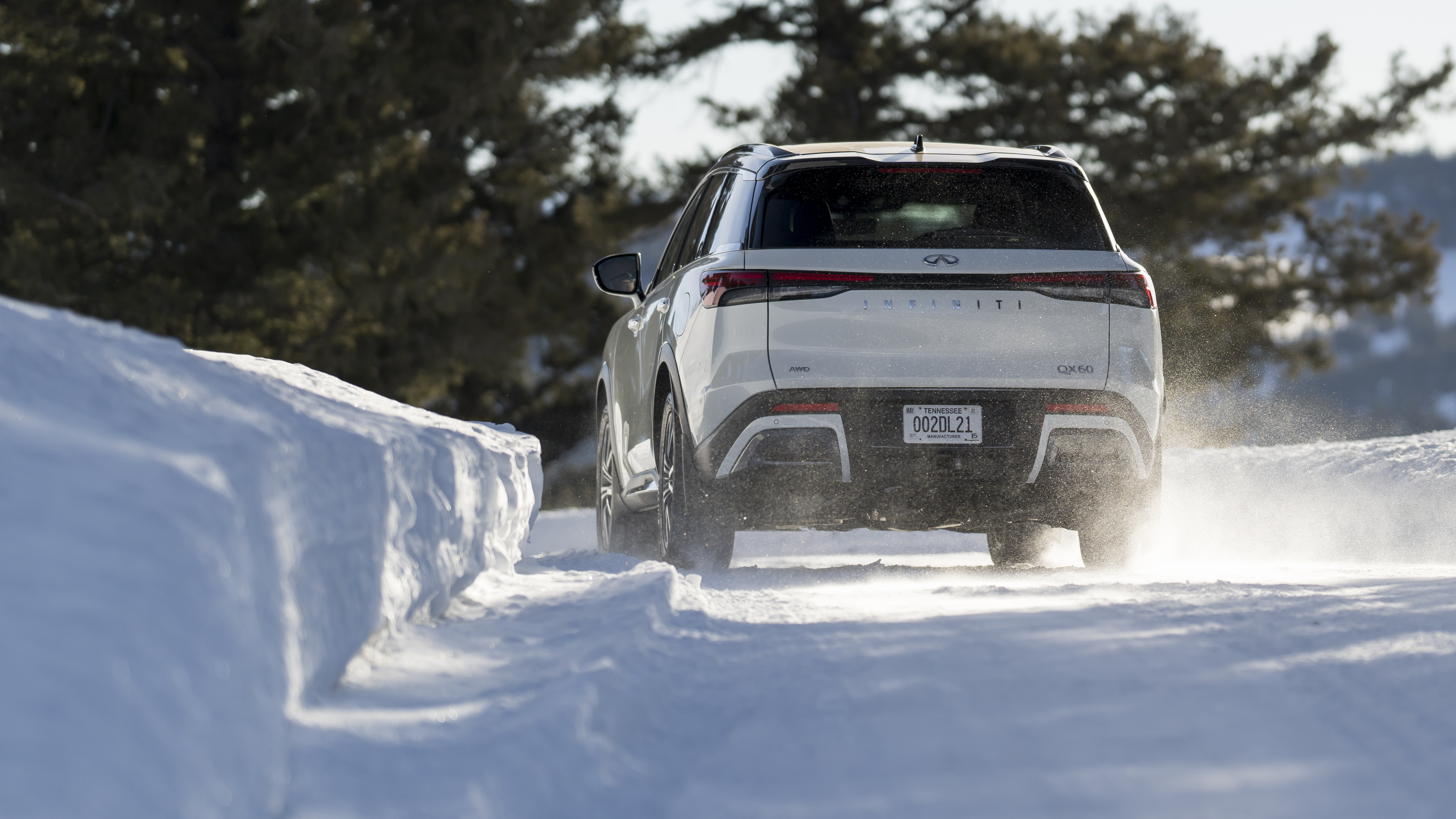 Power is supplied by Infiniti’s 3.5-liter naturally aspirated direct-injection V6 making 295 horsepower and 270 lb-ft of torque. Power is routed through a new 9-speed automatic transmission to all four tires thanks to Infiniti’s intelligent all-wheel drive. Our tester had Bridgestone Blizzak winter tires installed for our particular driving occasion.