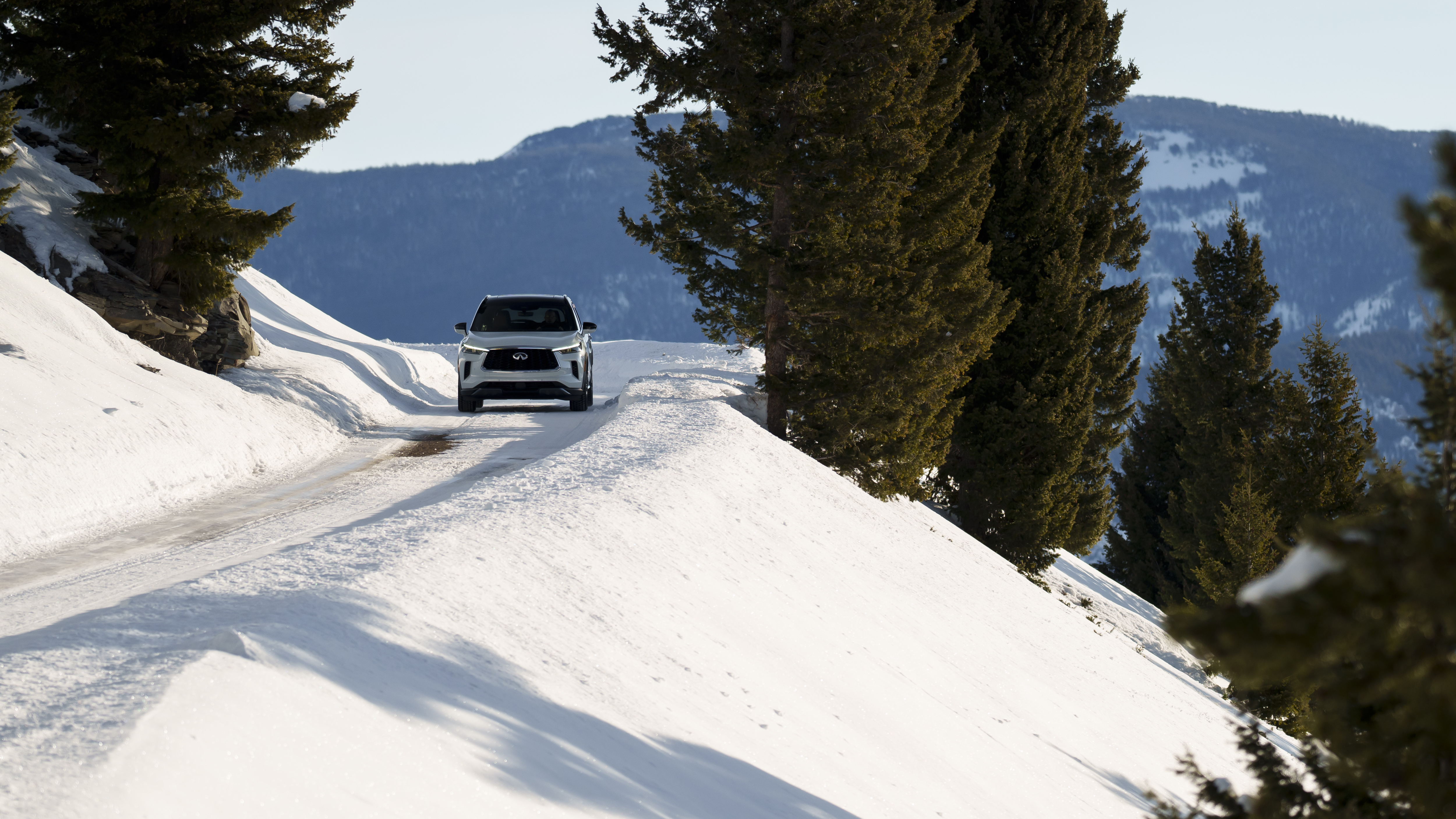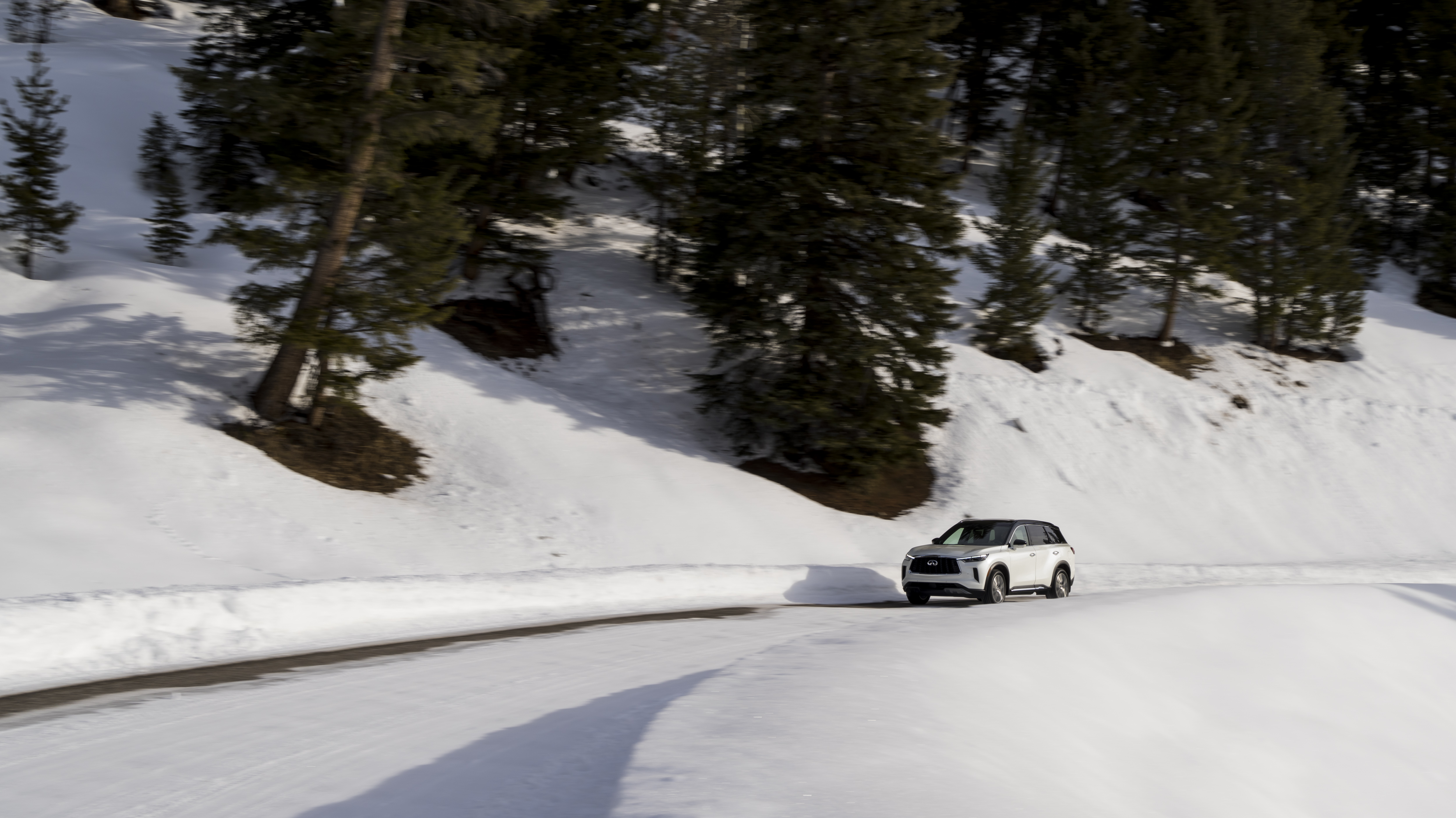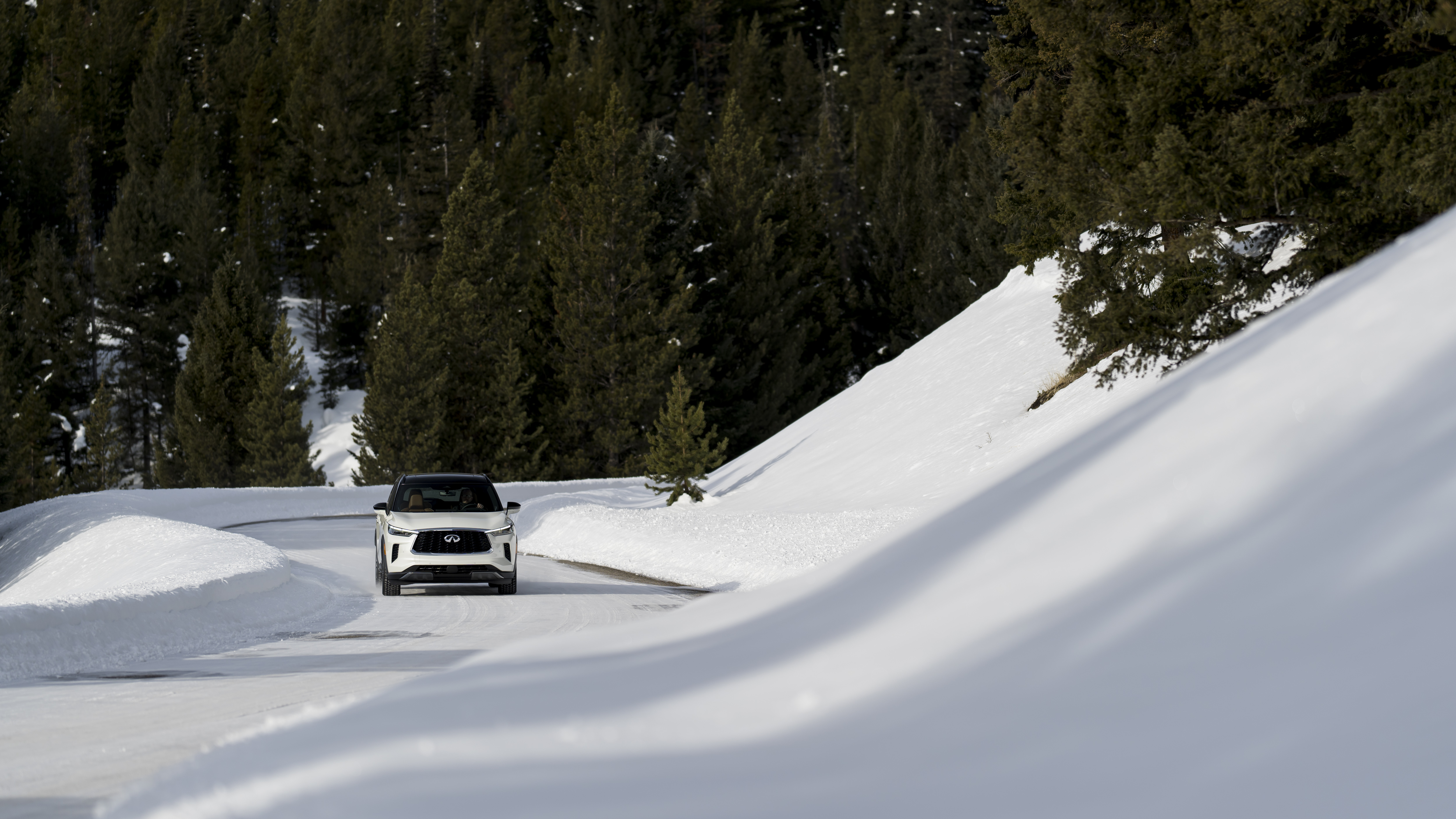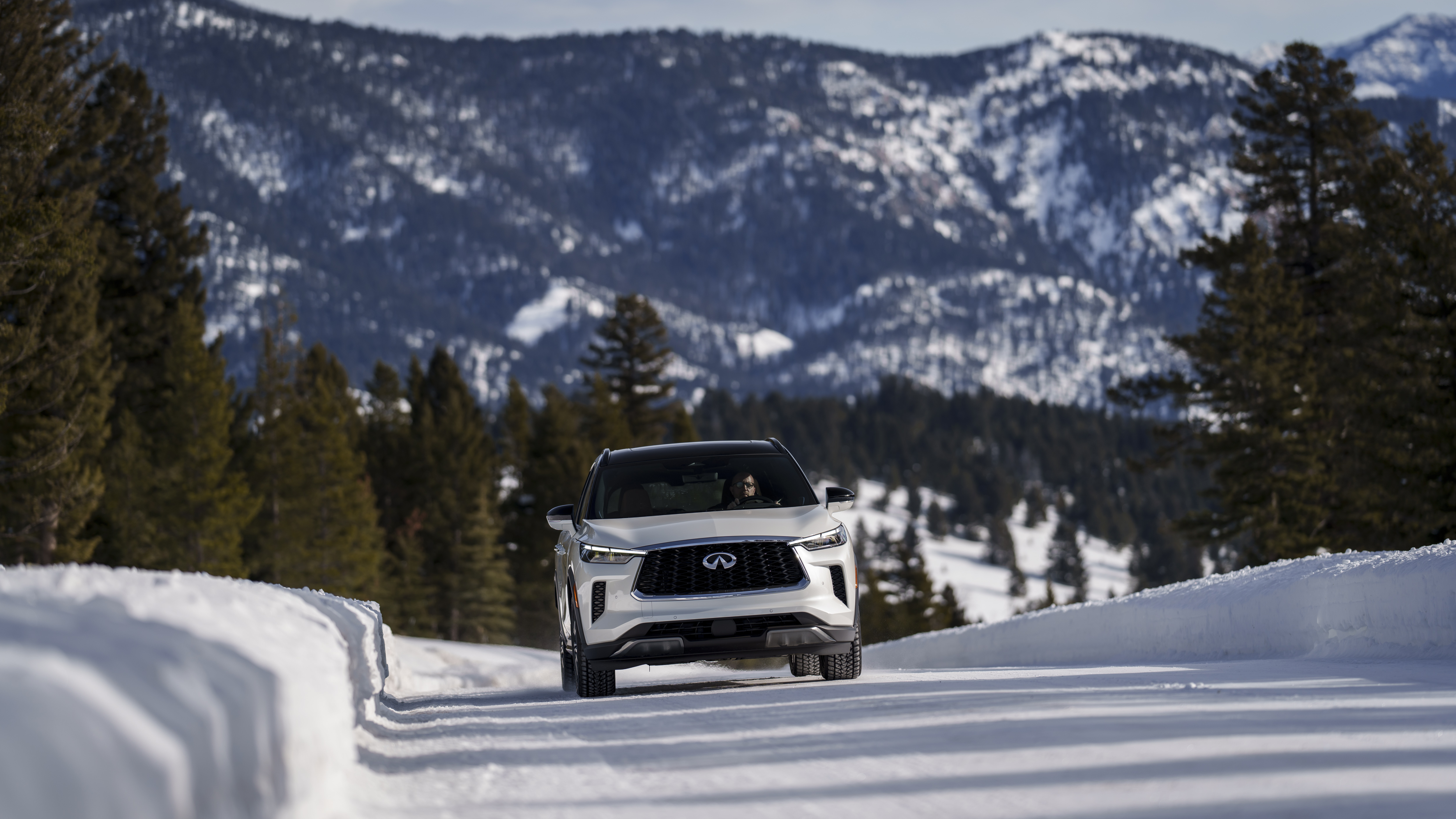 Power is supplied by Infiniti’s 3.5-liter naturally aspirated direct-injection V6 making 295 horsepower and 270 lb-ft of torque. Power is routed through a new 9-speed automatic transmission to all four tires thanks to Infiniti’s intelligent all-wheel drive. Our tester had Bridgestone Blizzak winter tires installed for our particular driving occasion.