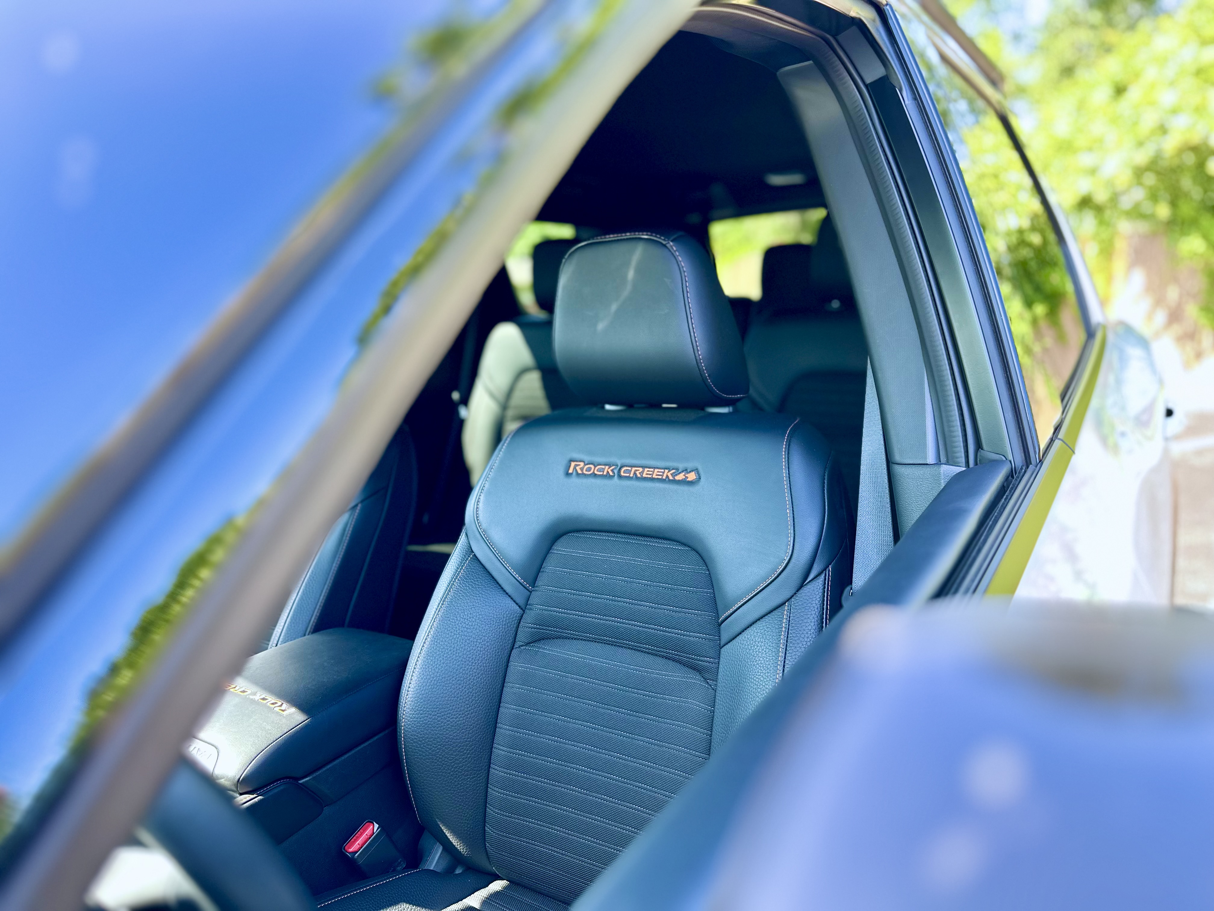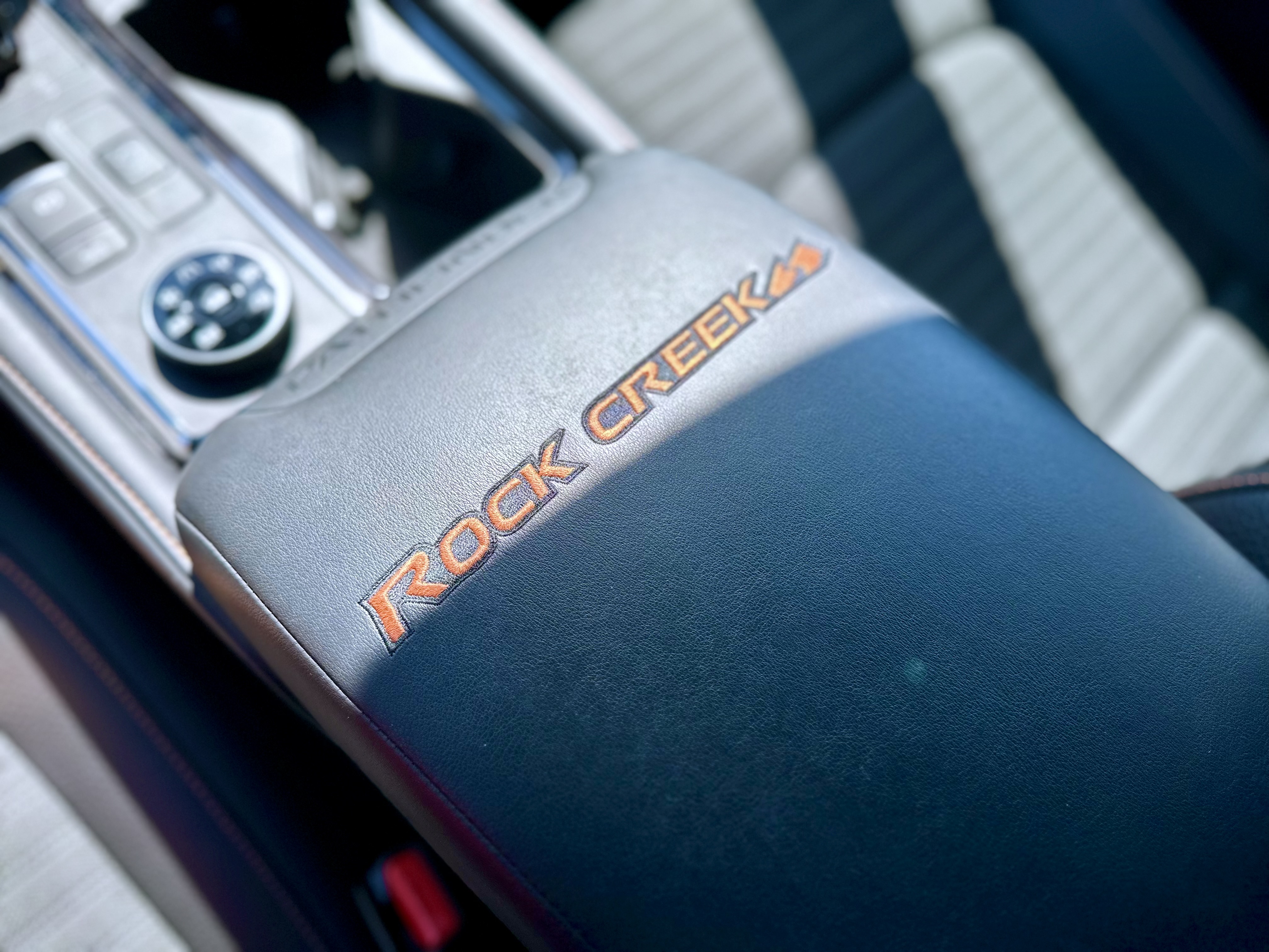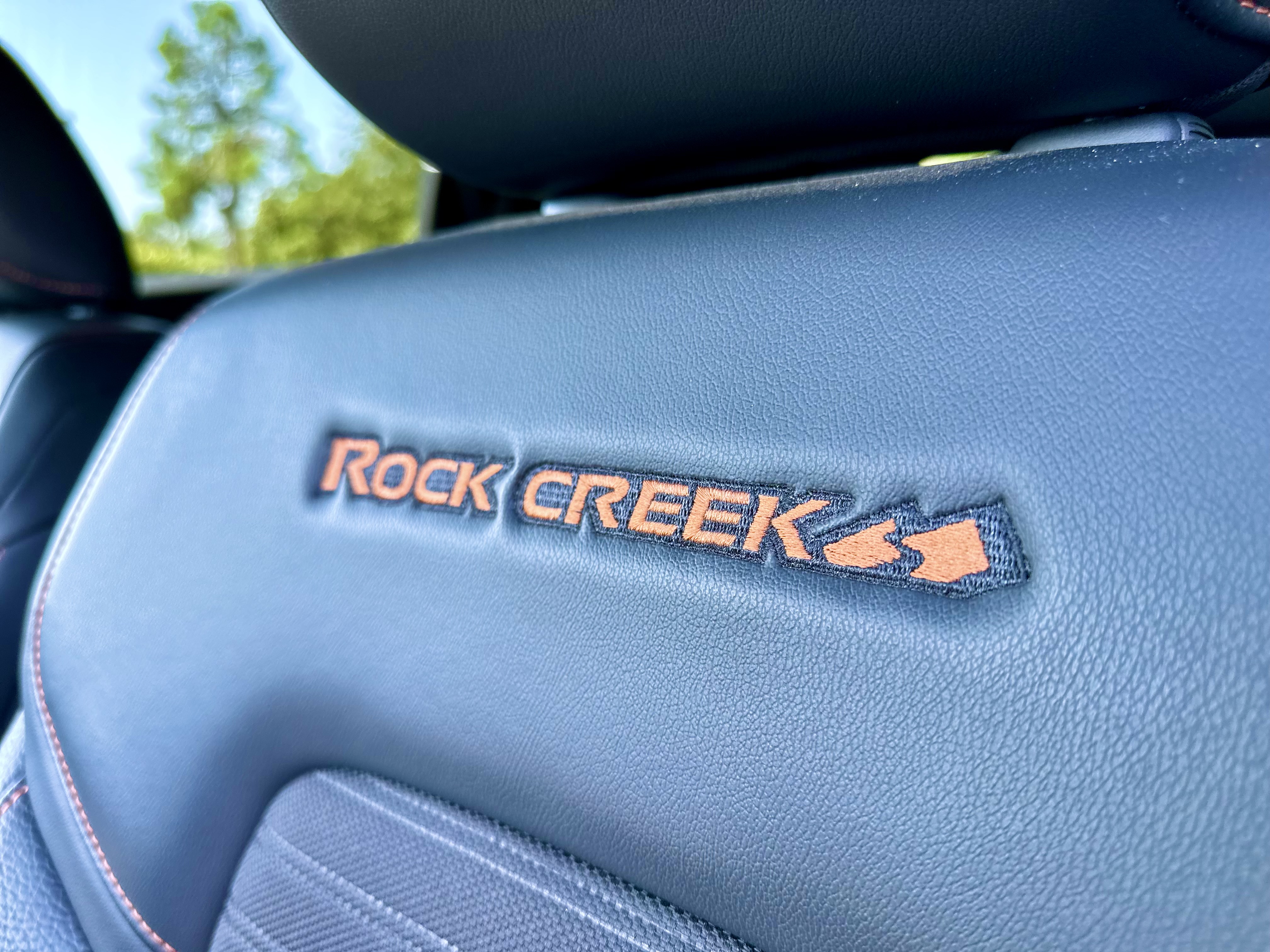 Inside, the Rock Creek Edition introduces orange accents, stitching, and lighting to the cabin. While not offering leather seats, the model comes equipped with rock creek-specific leatherette and cloth seats. The dashboard features an 8-inch infotainment system with wired Apple CarPlay and Android Auto, though some users have noted occasional lag in response.