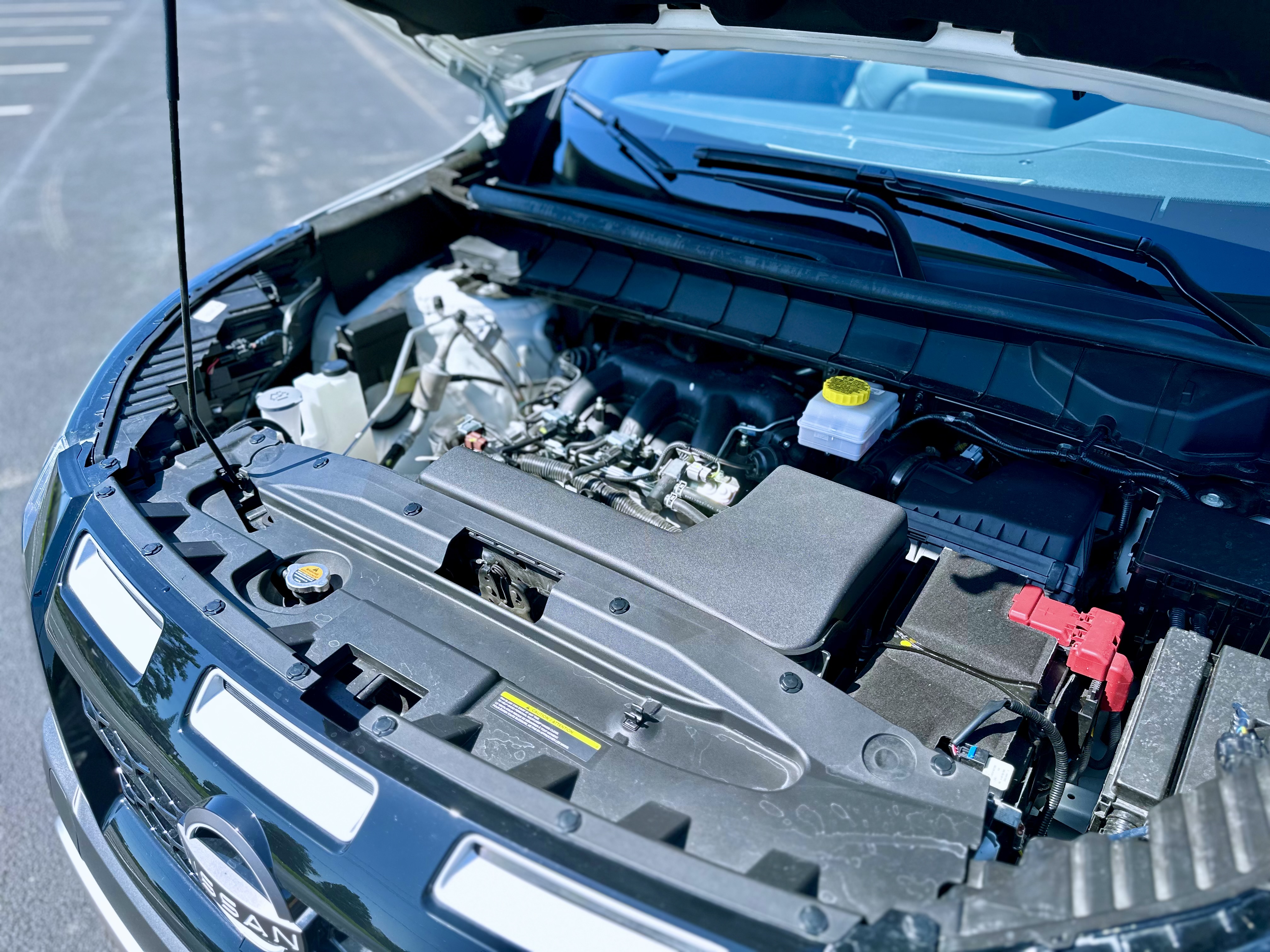 Lifting the hood reveals a transversely mounted 3.5-liter direct-injection V6 engine. While the Pathfinder is front-wheel-drive biased, it’s equipped with Nissan’s intelligent 4×4 system, boasting seven drive and terrain modes for various conditions. Power figures stand at 284 horsepower and 259 pound-feet of torque on regular fuel, while premium fuel raises the output to 295 horsepower and 270 pound-feet of torque, coupled with a nine-speed automatic transmission.