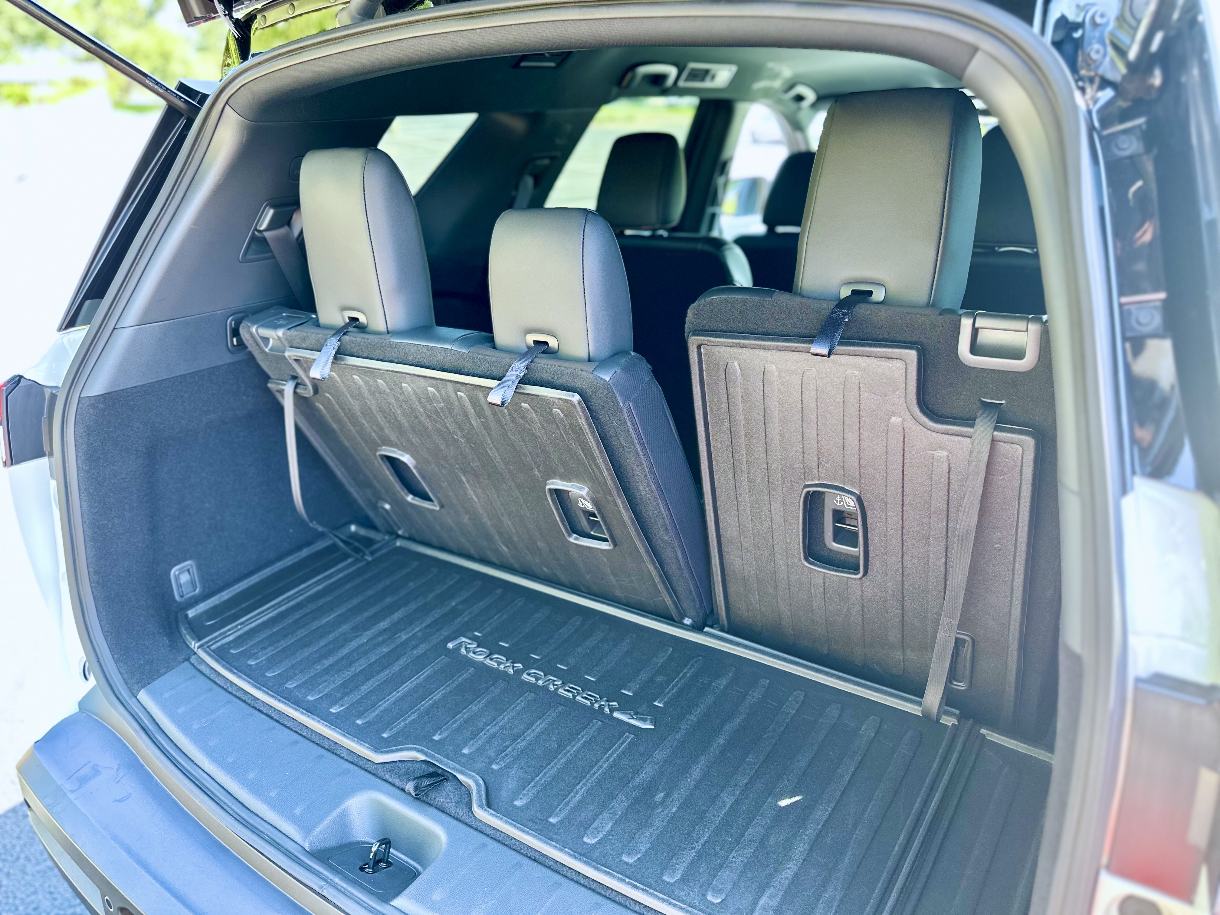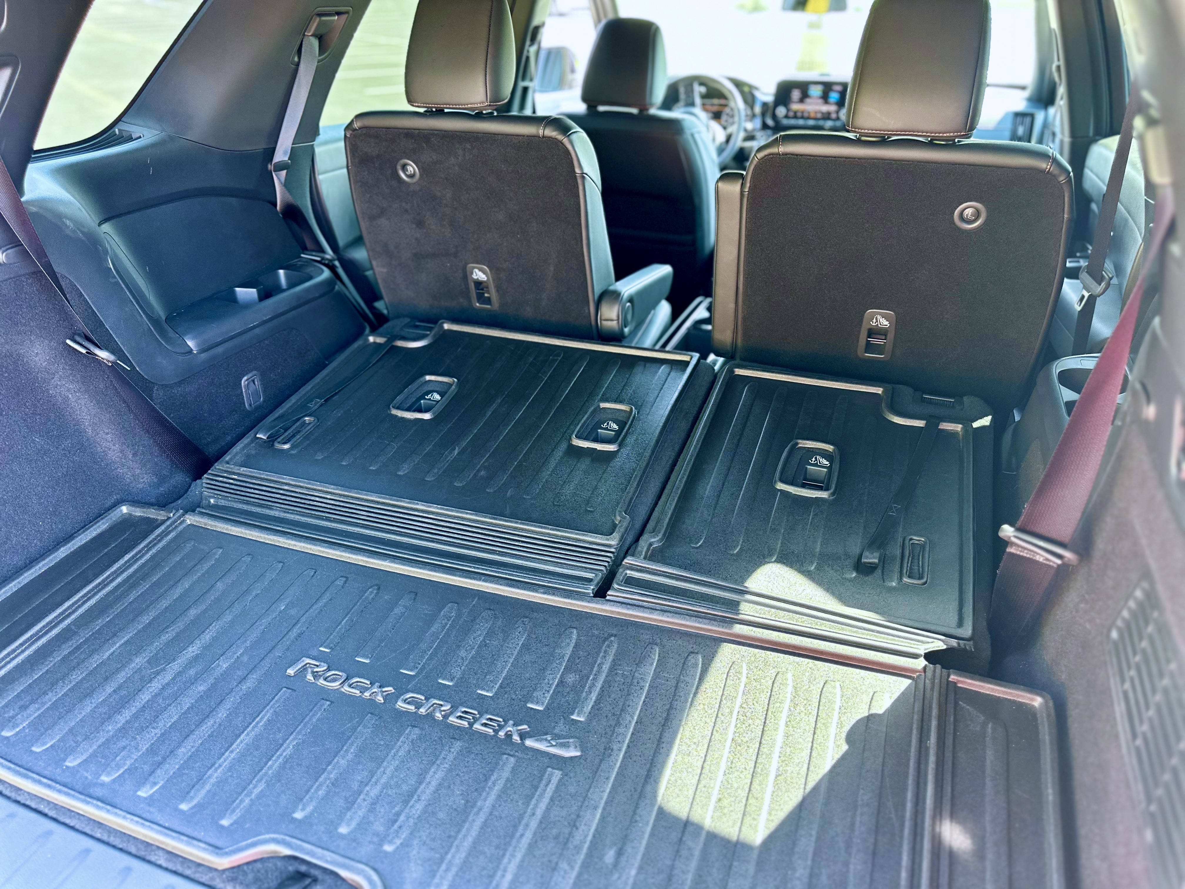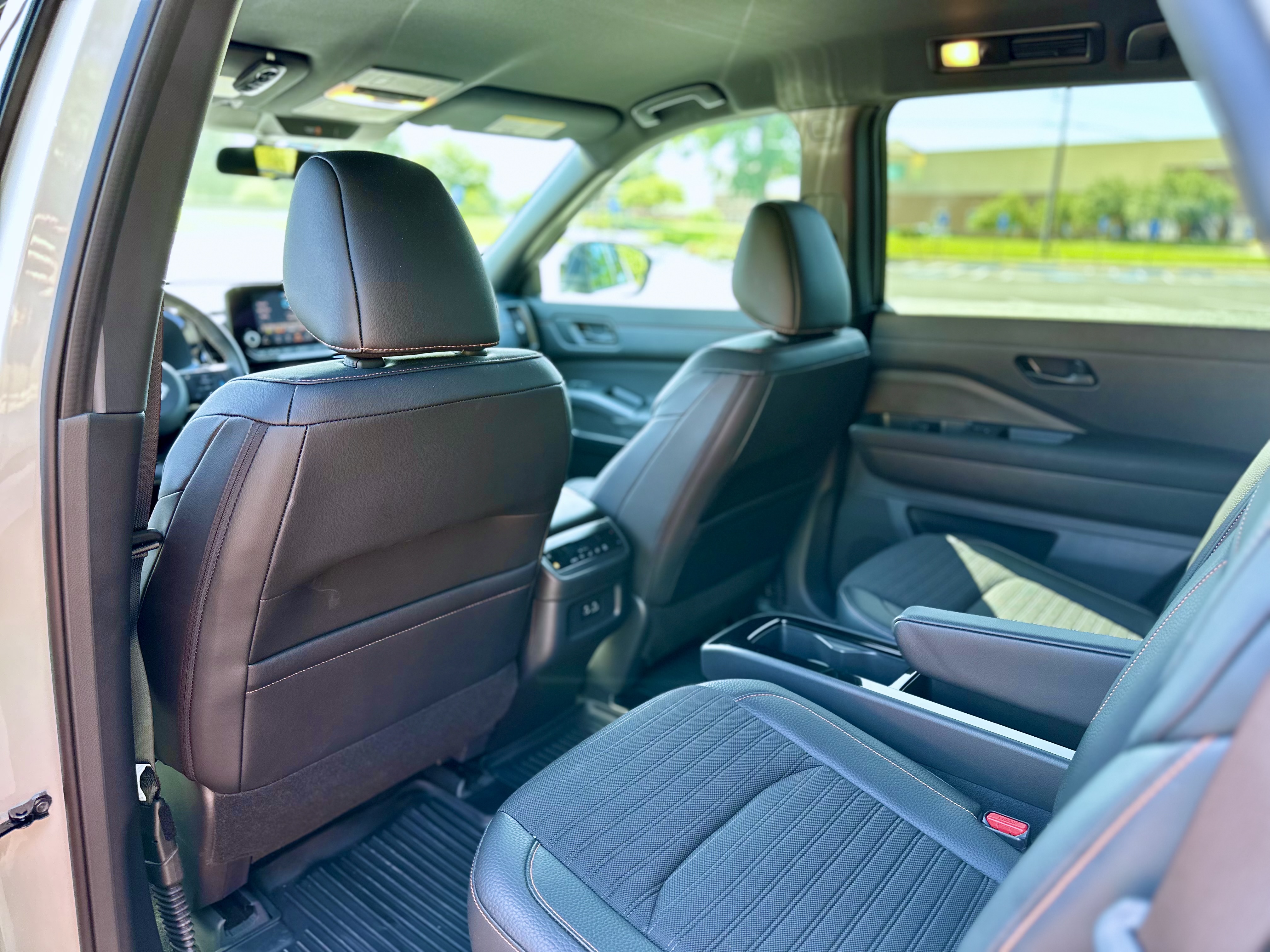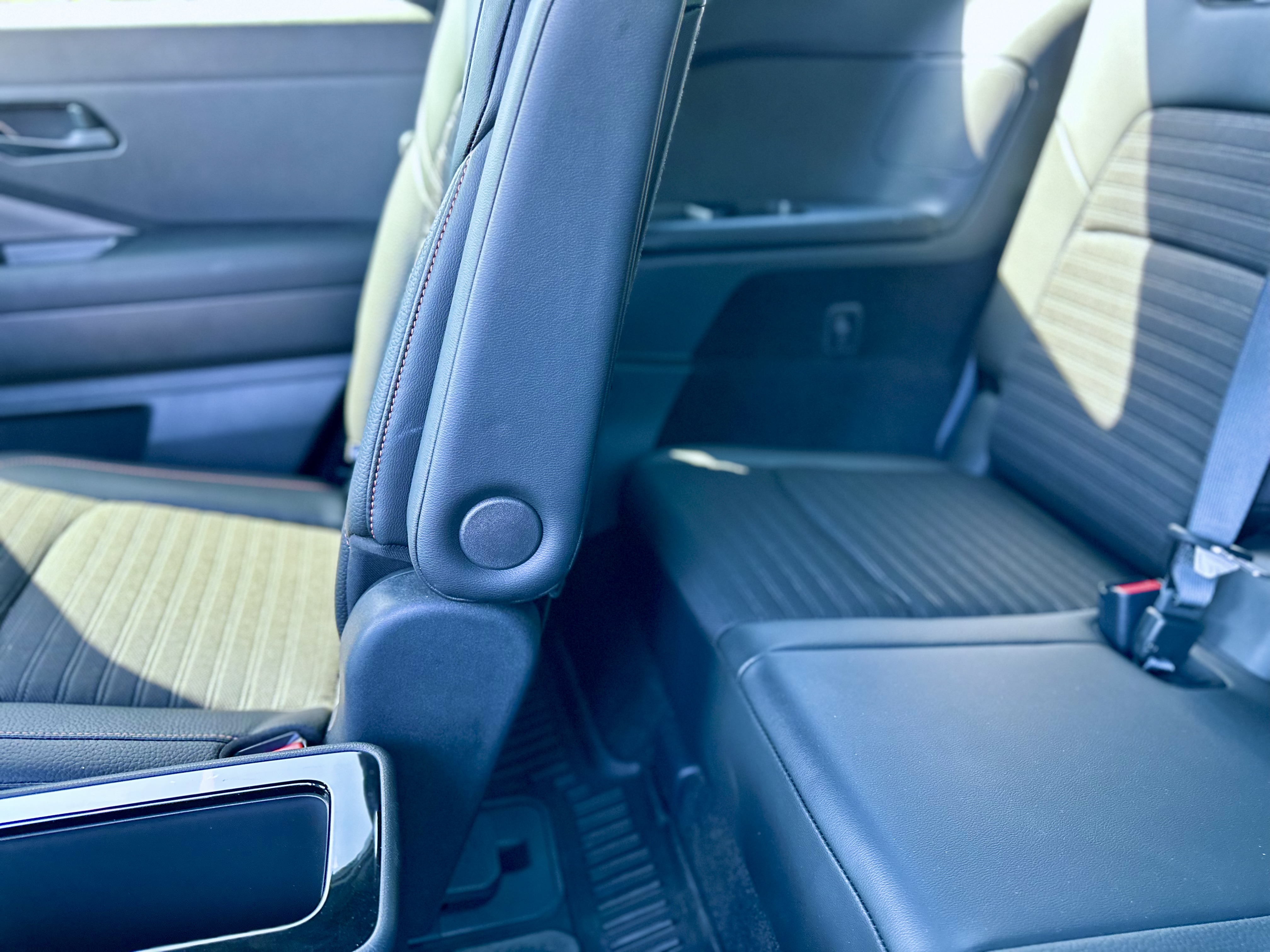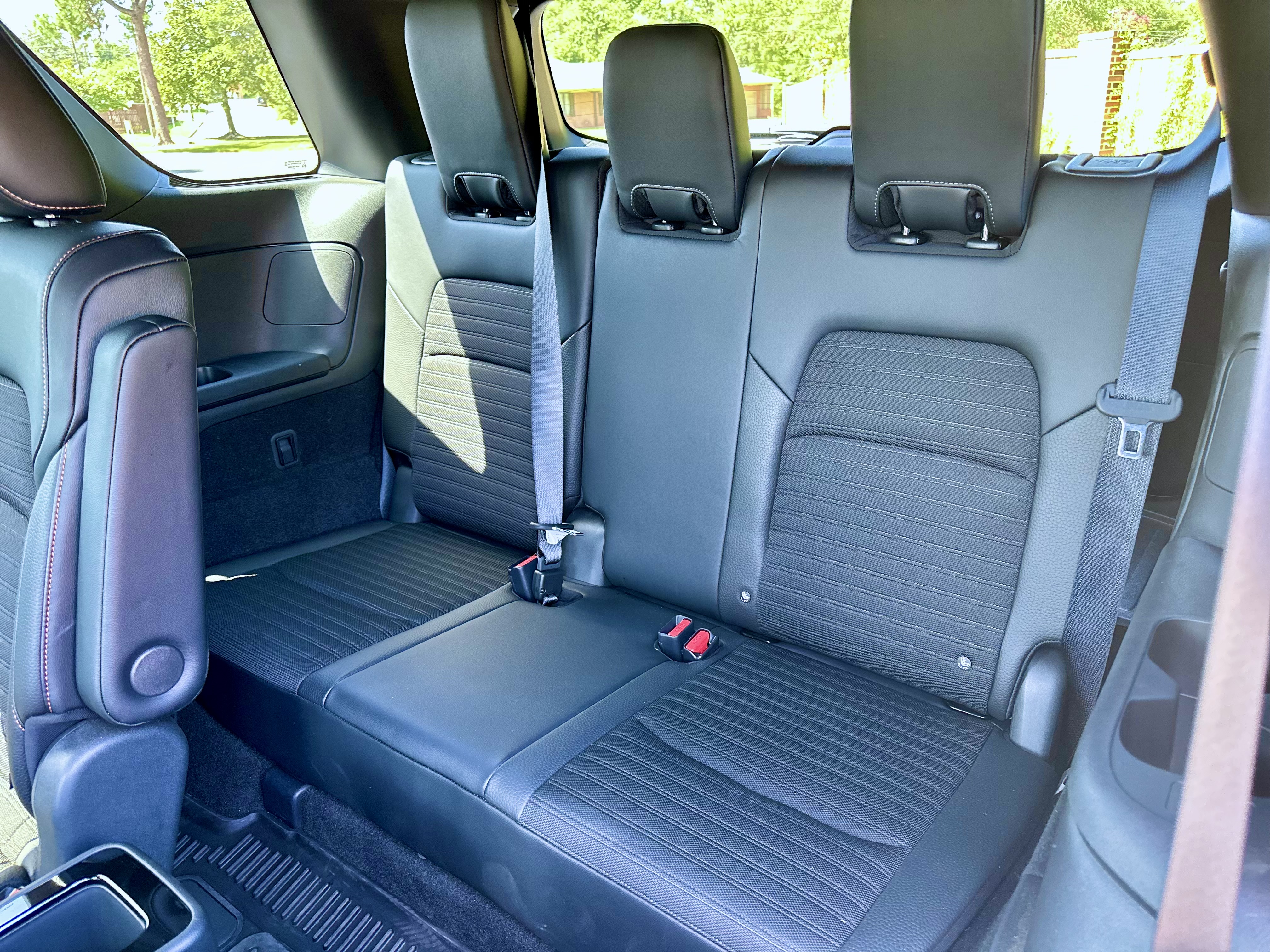 The Pathfinder offers a stadium-style seating arrangement, providing excellent visibility for all passengers. The second row has a sliding function to balance legroom between rows. The third row, though relatively cramped, offers roof-mounted vents for improved rear passenger comfort. Additionally, the rear seats can be folded down to expand cargo space.
