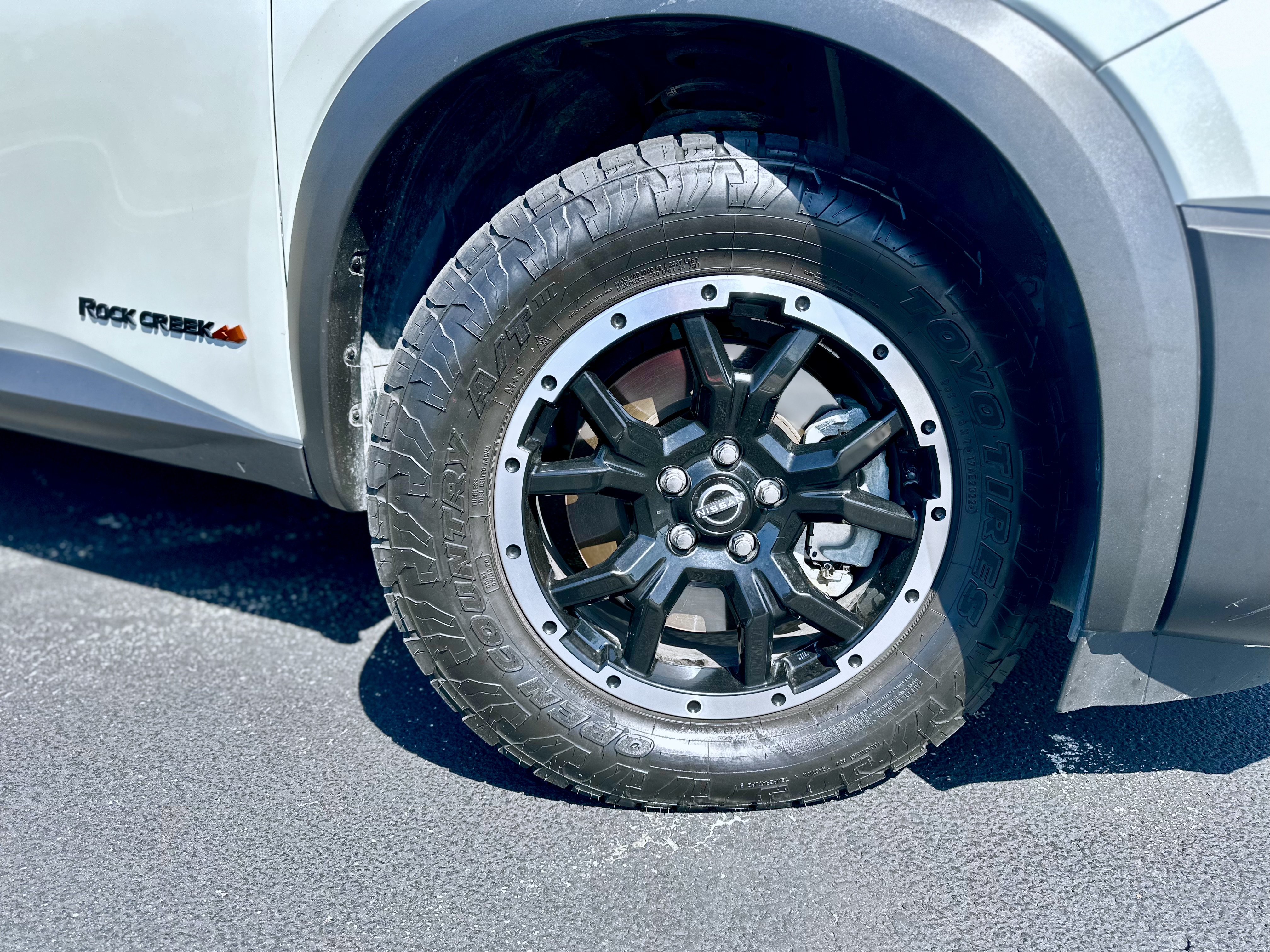 The Rock Creek Edition sets itself apart with distinctive design cues. Upfront, a new v-motion grille with homage to the original Pathfinder’s portholes grabs attention, accompanied by aggressive black plastic cladding, black grille accents, and LED lighting elements. Beadlock-style wheels wrapped in Toyo Open Country tires further reinforce the model’s tough aesthetic.