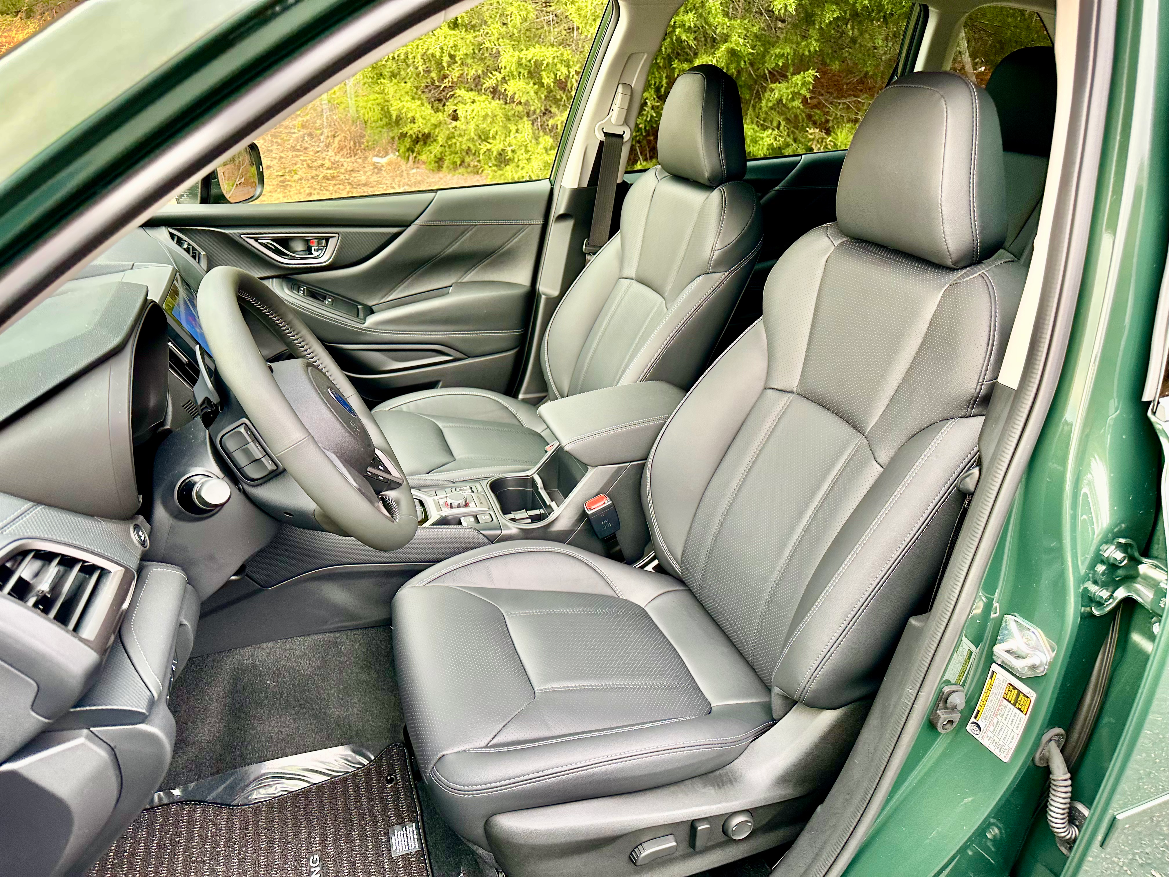 Move inside and the Touring model greets you with leather seats and a welcoming cabin. The overall design of the Forester has a large greenhouse of windows which makes the visibility out of the Forester a selling point. The amount of glass also helps alleviate the feeling of being in a dark cave which can be common in modern vehicles, especially ones that have all-black leather interiors like this one.