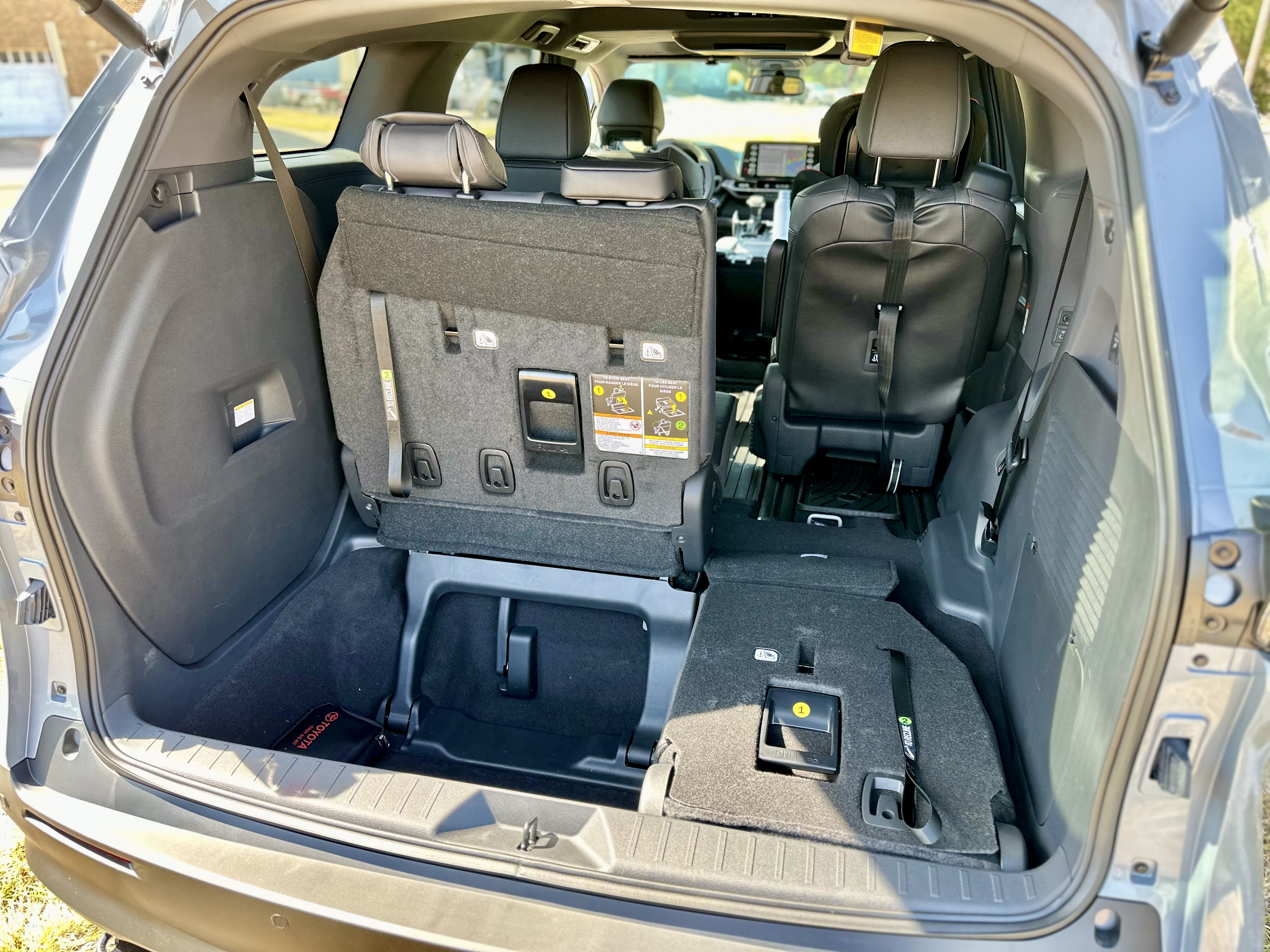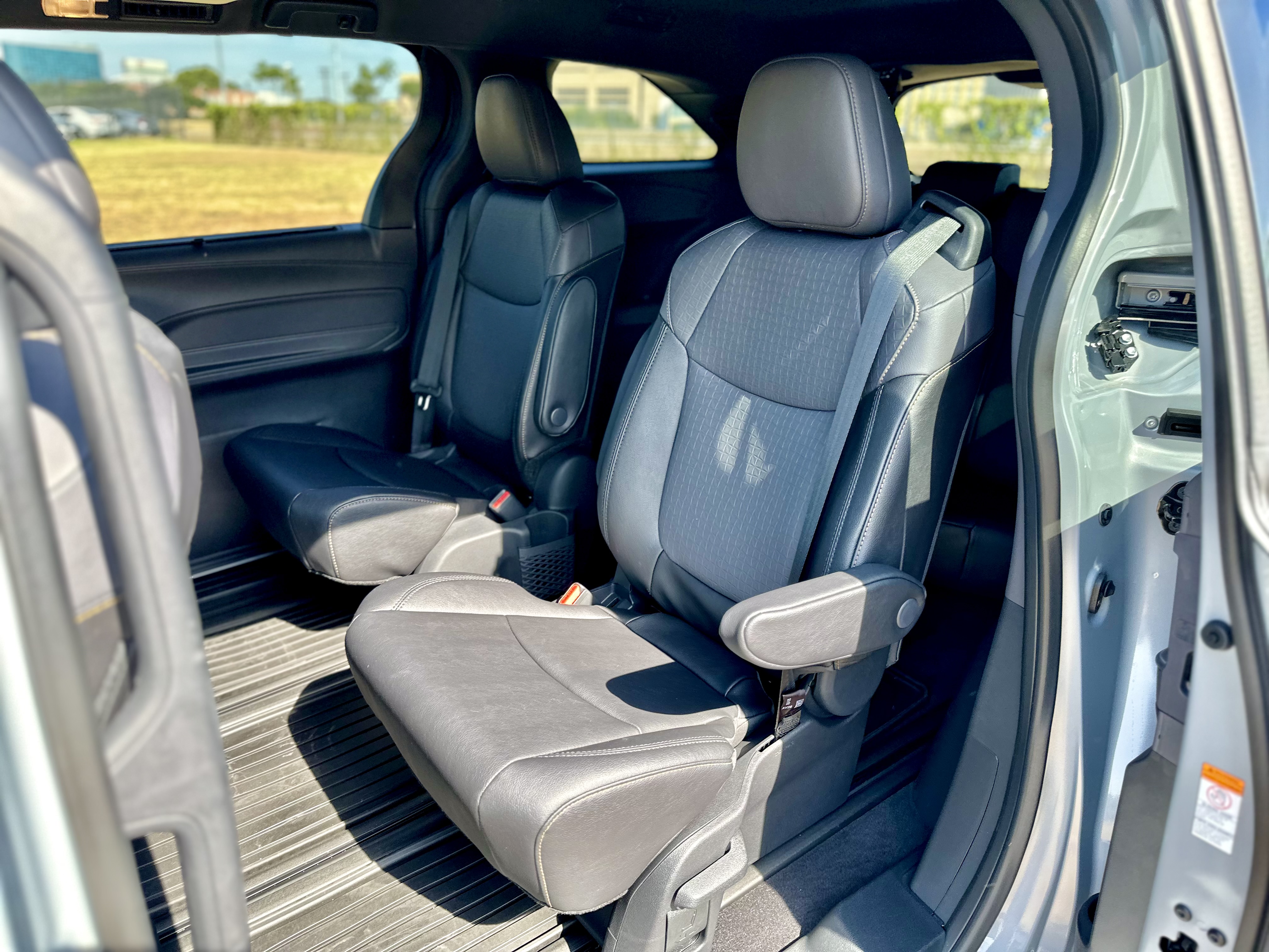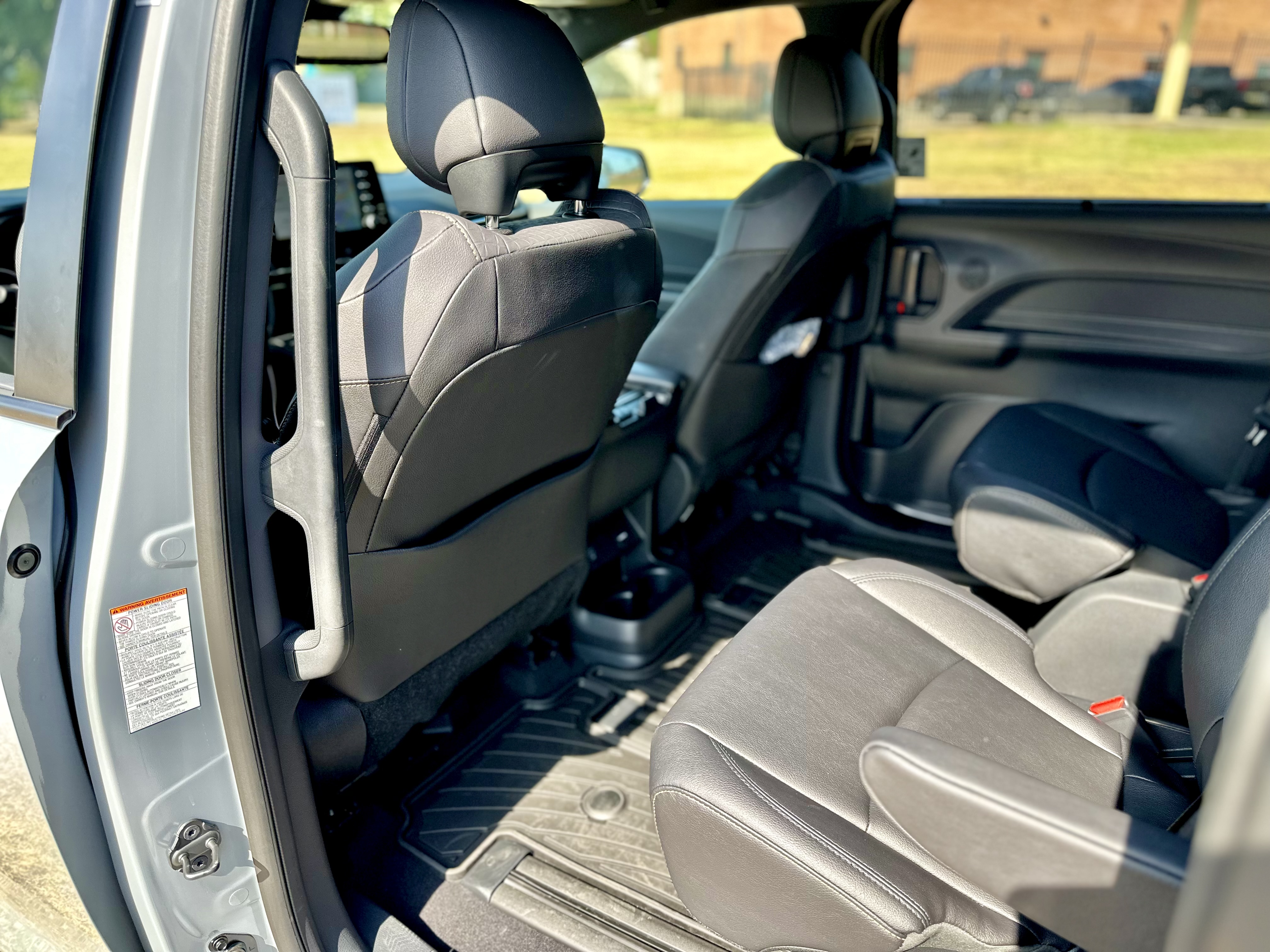 Sliding into the cabin, you’re greeted by a well-thought-out interior design that provides both comfort and functionality. The XLE Woodland Edition’s SofTex seats with earth-tone stitching offer a cozy place to rest and were more than comfortable in my 2-hour drive back from the DFW metroplex. The second-row Super Slide captain’s chairs make for an embarrassment of room for rear passengers. Thanks to the tracks in the floor, these captain’s chairs can slide from just behind the front seats all the way back to the third row. Speaking of the third row, while it may not be as roomy as the first two rows, it’s still comfortable enough for occasional use, and the reclining feature is a nice touch. Additionally, the rear cabin comes equipped with quad-zone climate controls, ensuring that everyone stays cool and comfortable on the journey.