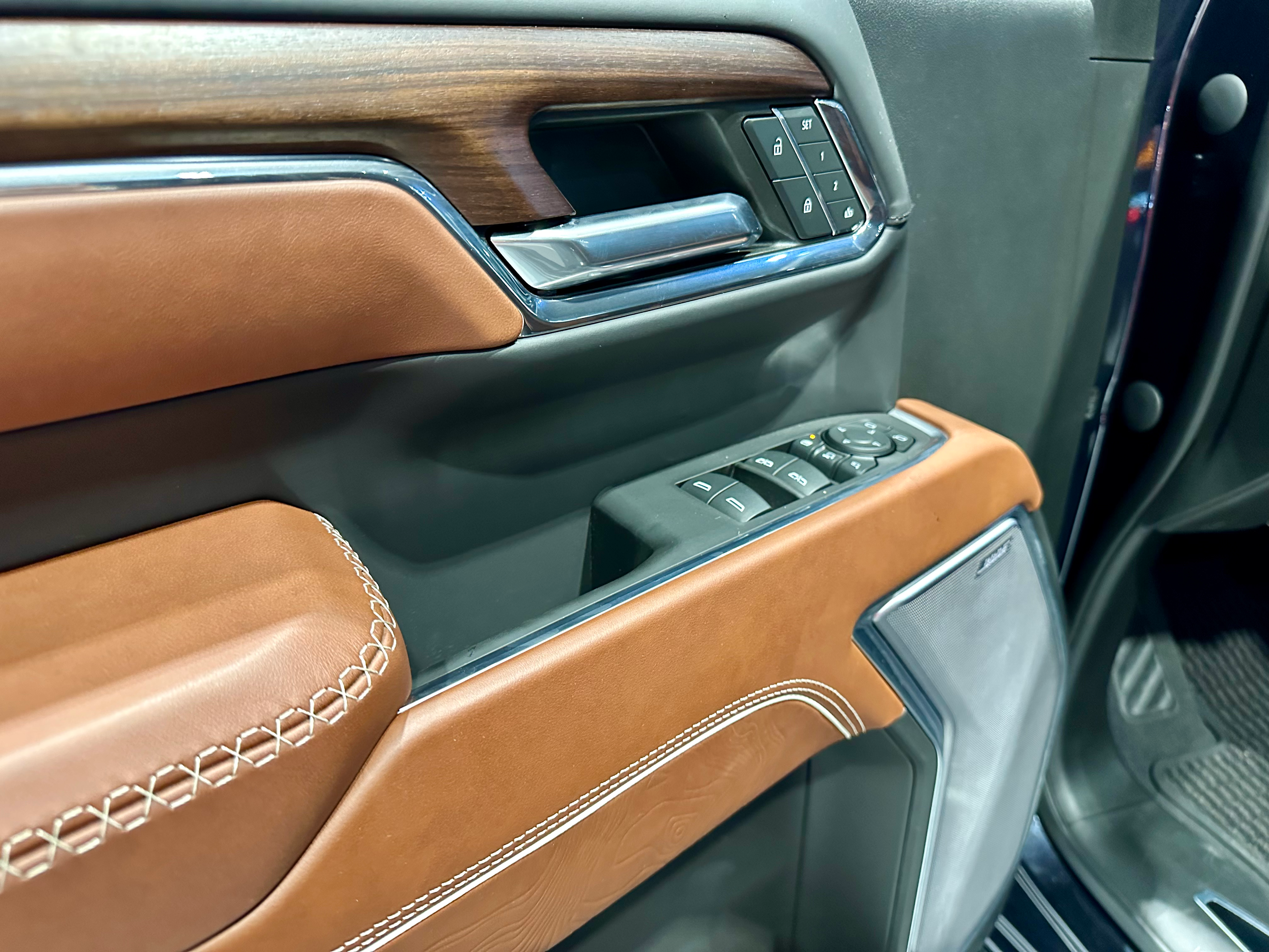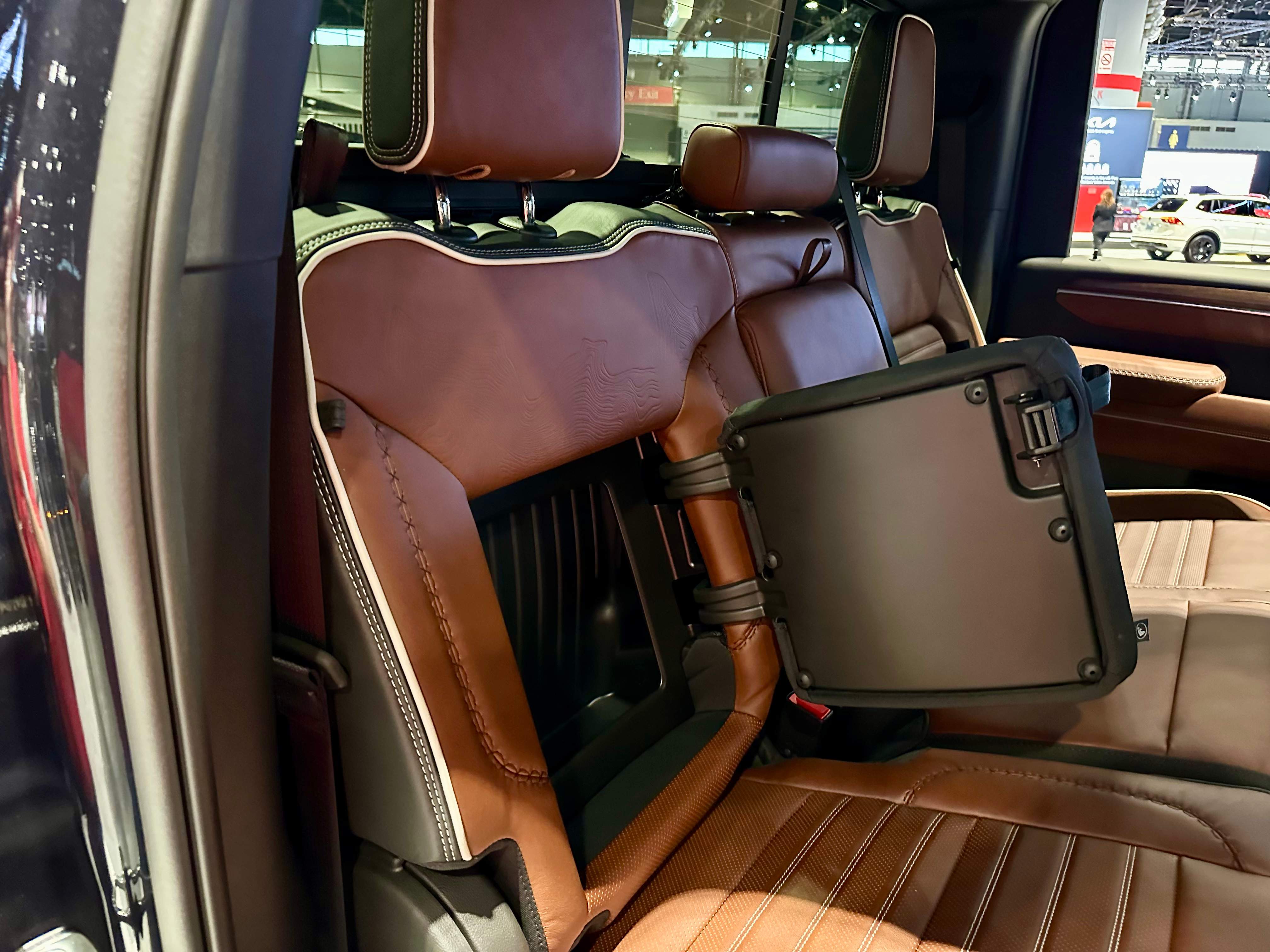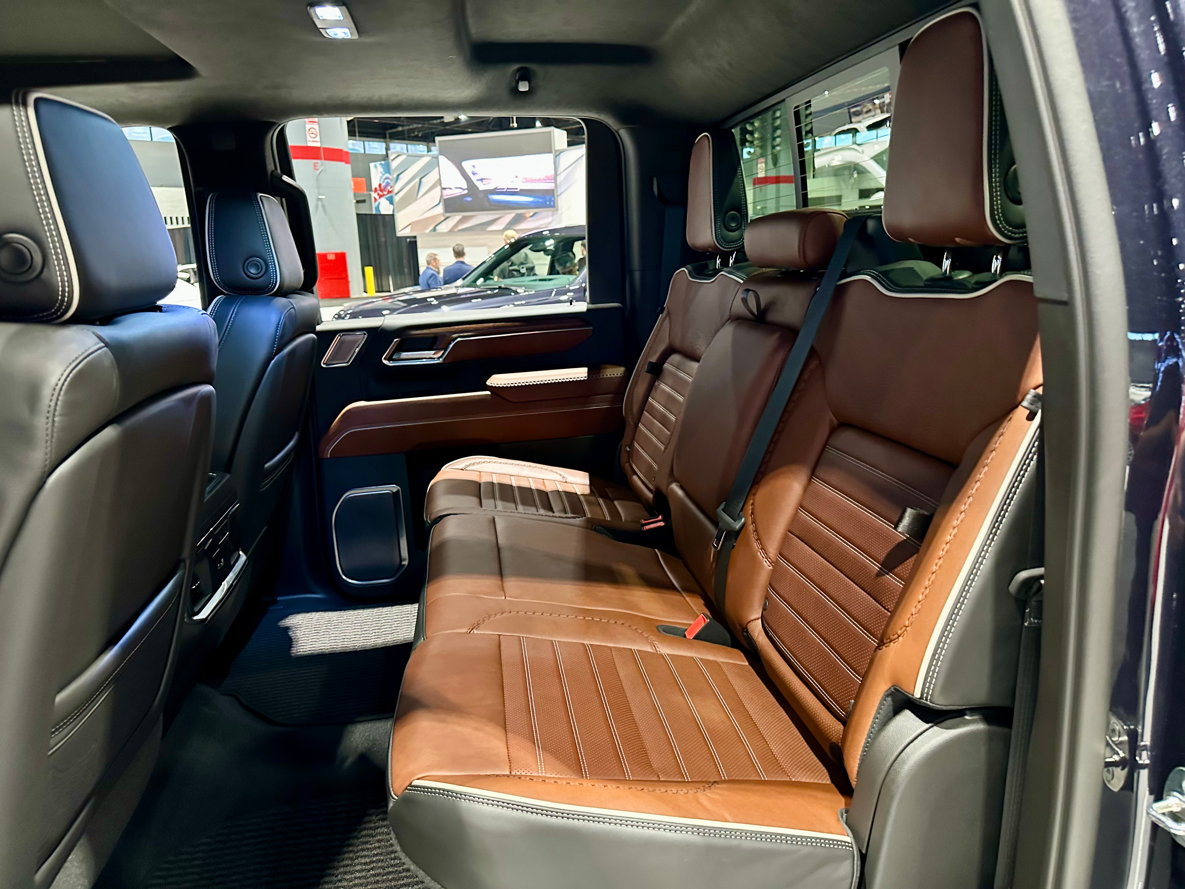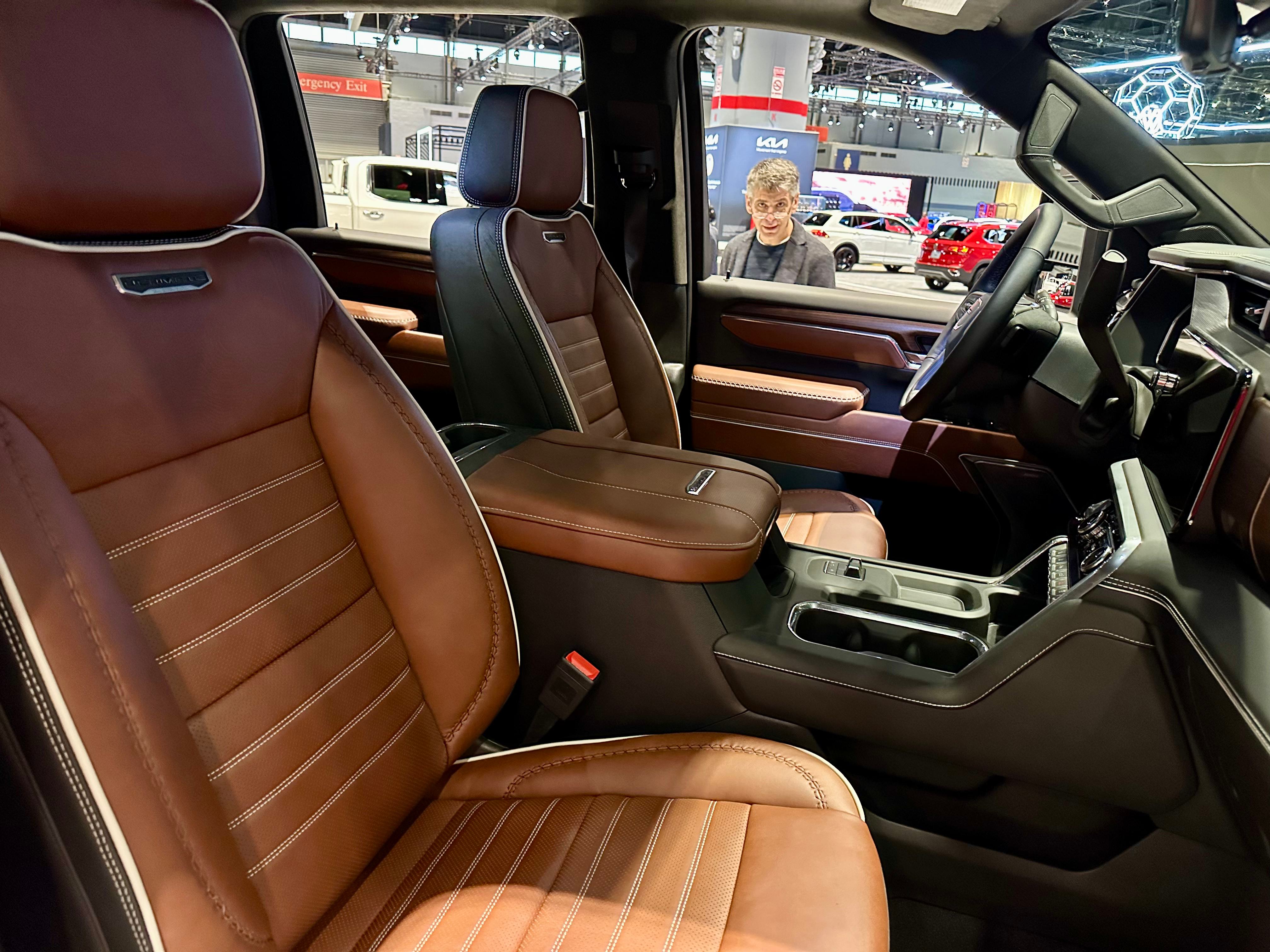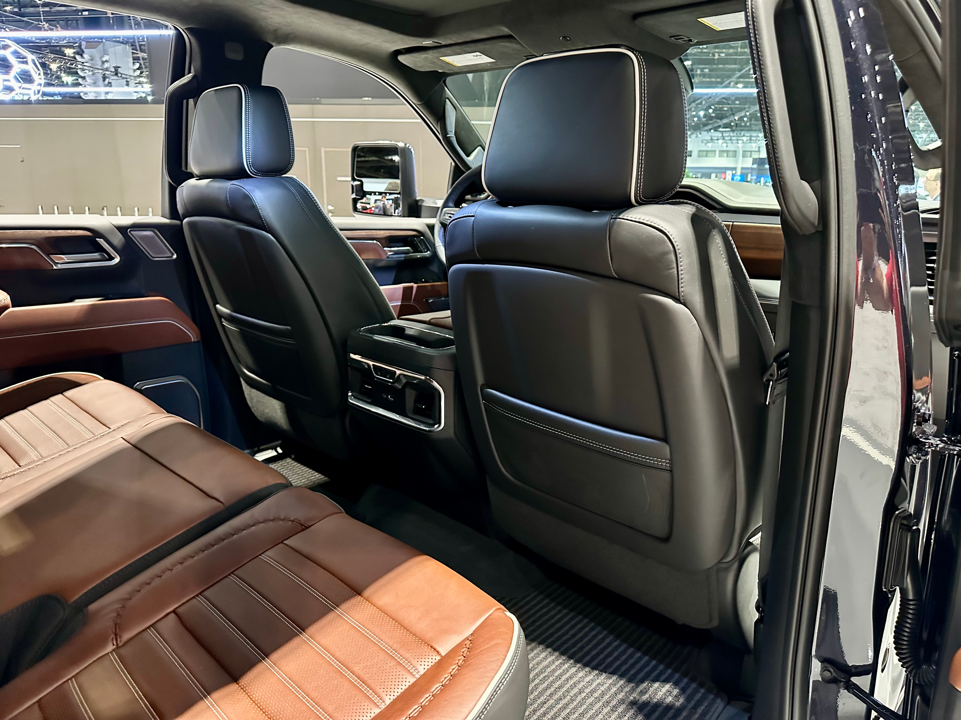 • Full-grain leather front and rear seats with the Denali Ultimate badge on the front seatbacks and center console lid