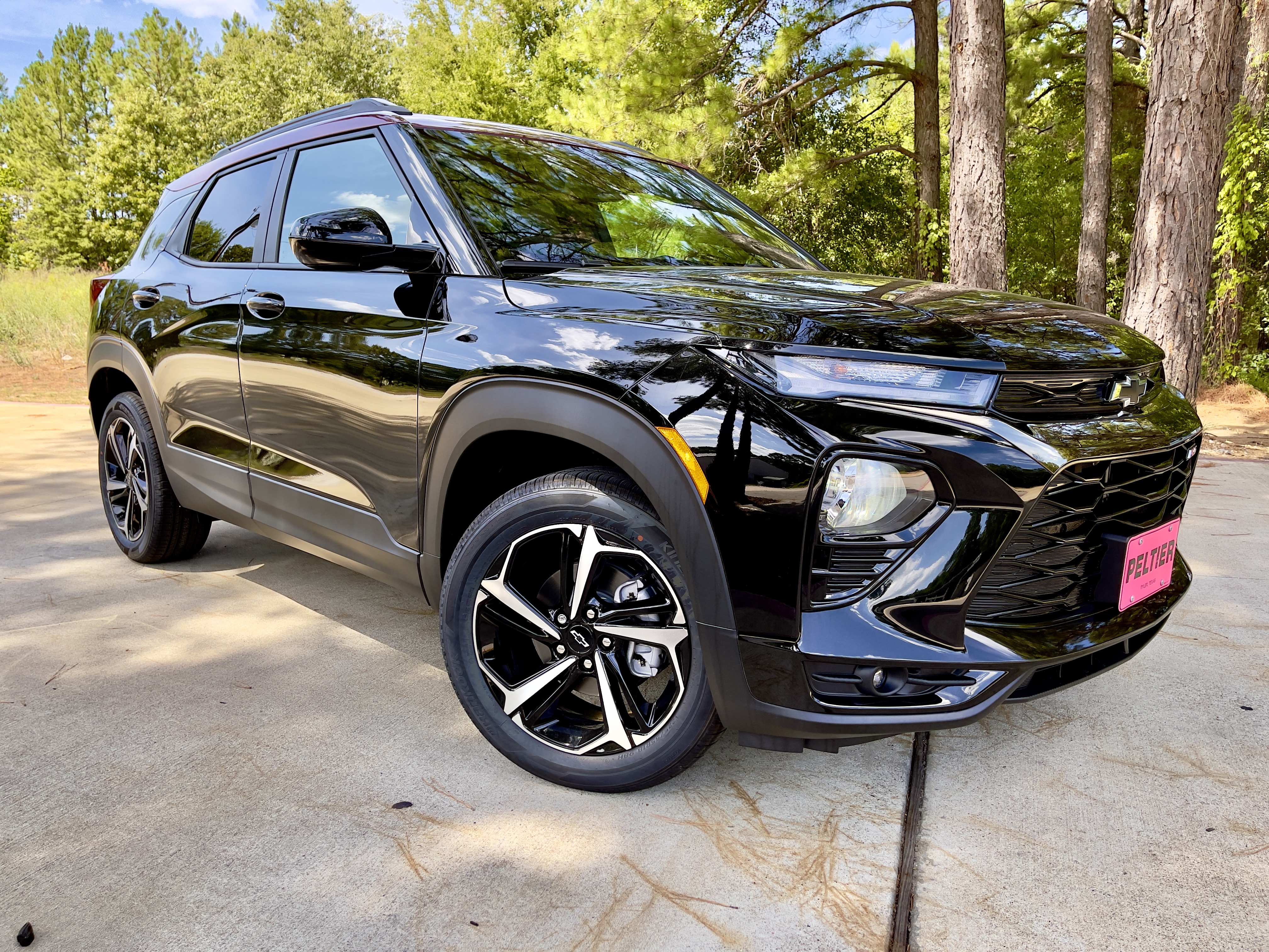 We tested this 2023 RS model with racier looks inspired by the Camaro and larger Blazer SUV. The RS trim gets blacked out grilles, badging, and bowties front and rear, sportier looking wheels, and a RED roof! Inside, red accents abound making this playful vehicle look more aggressively styled from the driver’s seat.