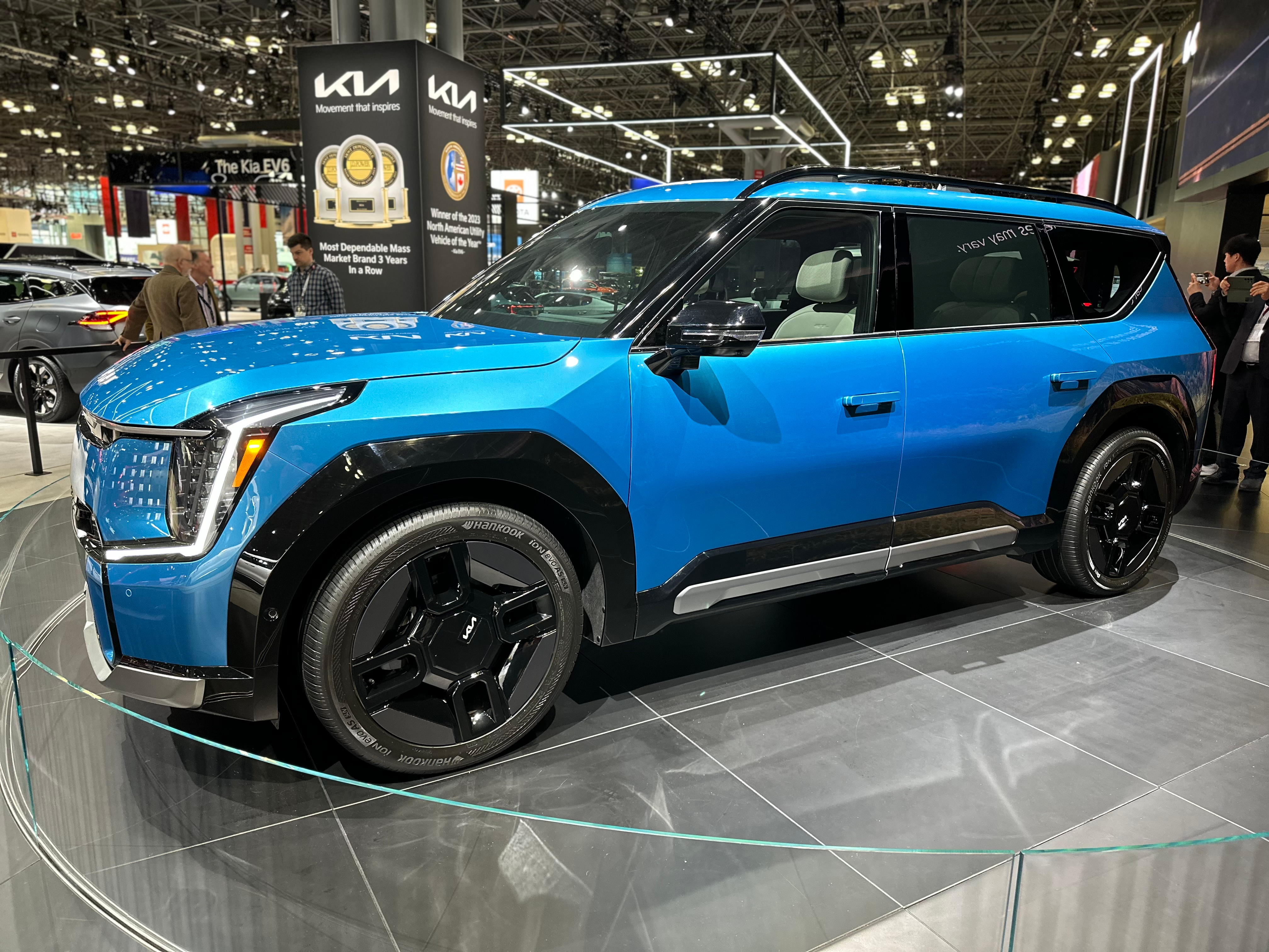 Kia unveiled the 2024 EV9, an all-electric 3-row SUV with impressive features, at the 2023 New York International Auto Show.